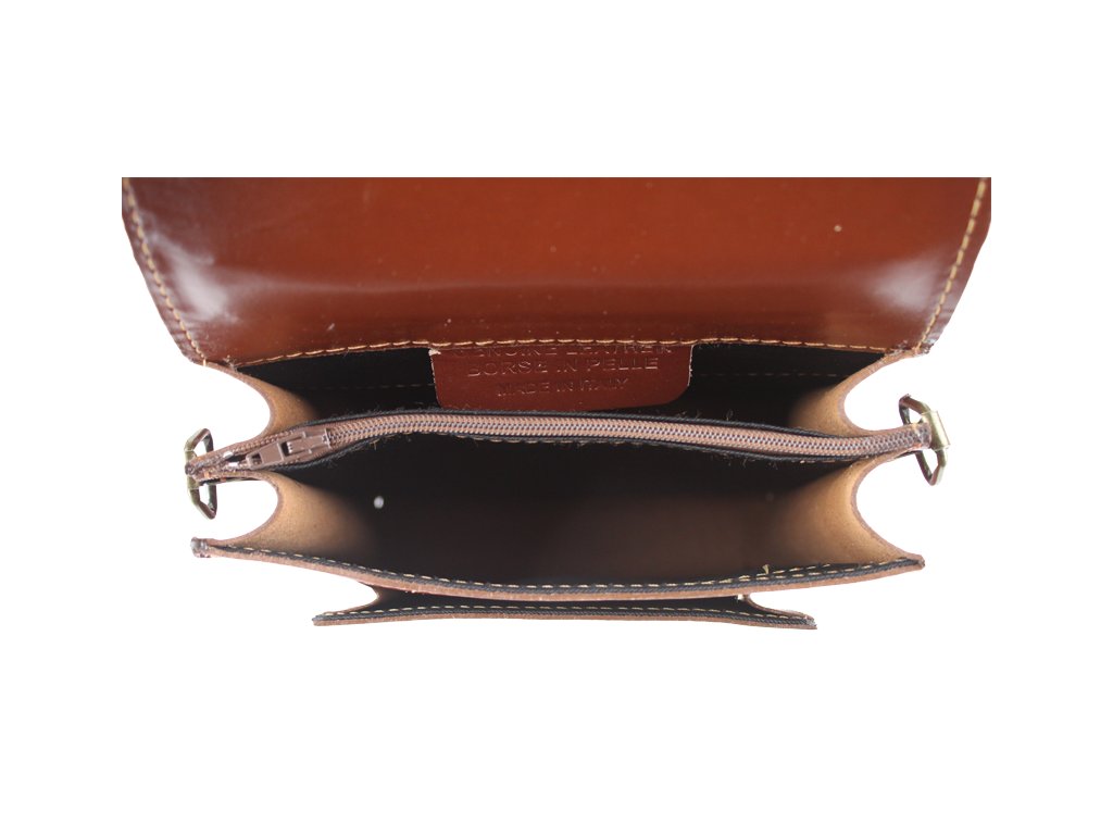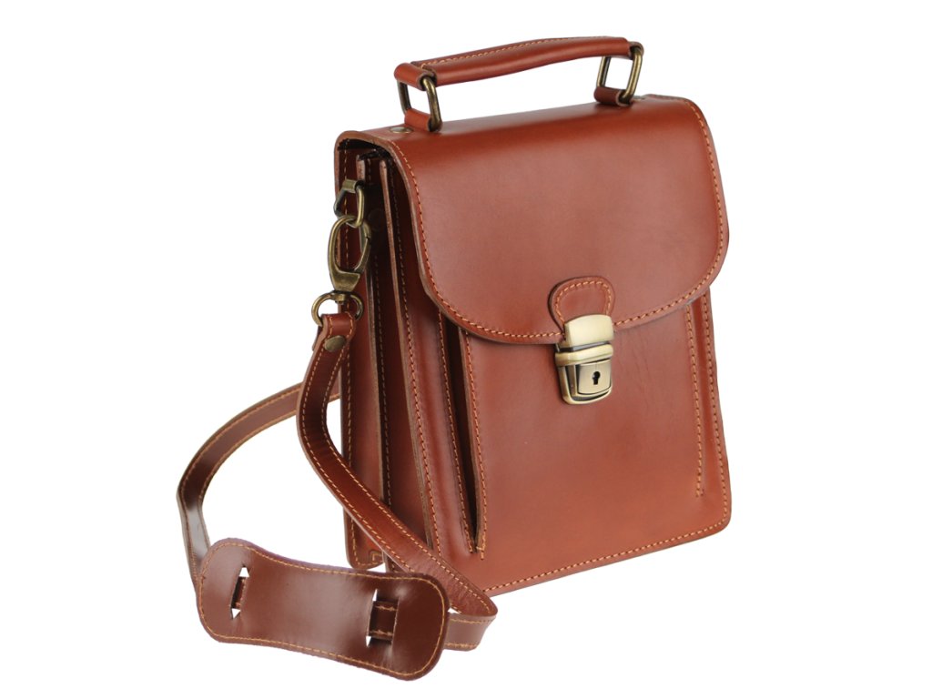 Menší kožená hnědé aktovka s popruhem přes rameno (cca 102 cm) se hodí na všechny věci, které potřebujete mít stále po ruce. Peněženka, doklady od auta, klíče a jiné drobnosti budete mít pohromadě. Aktovku lze uzamknout pomocí klíčku.