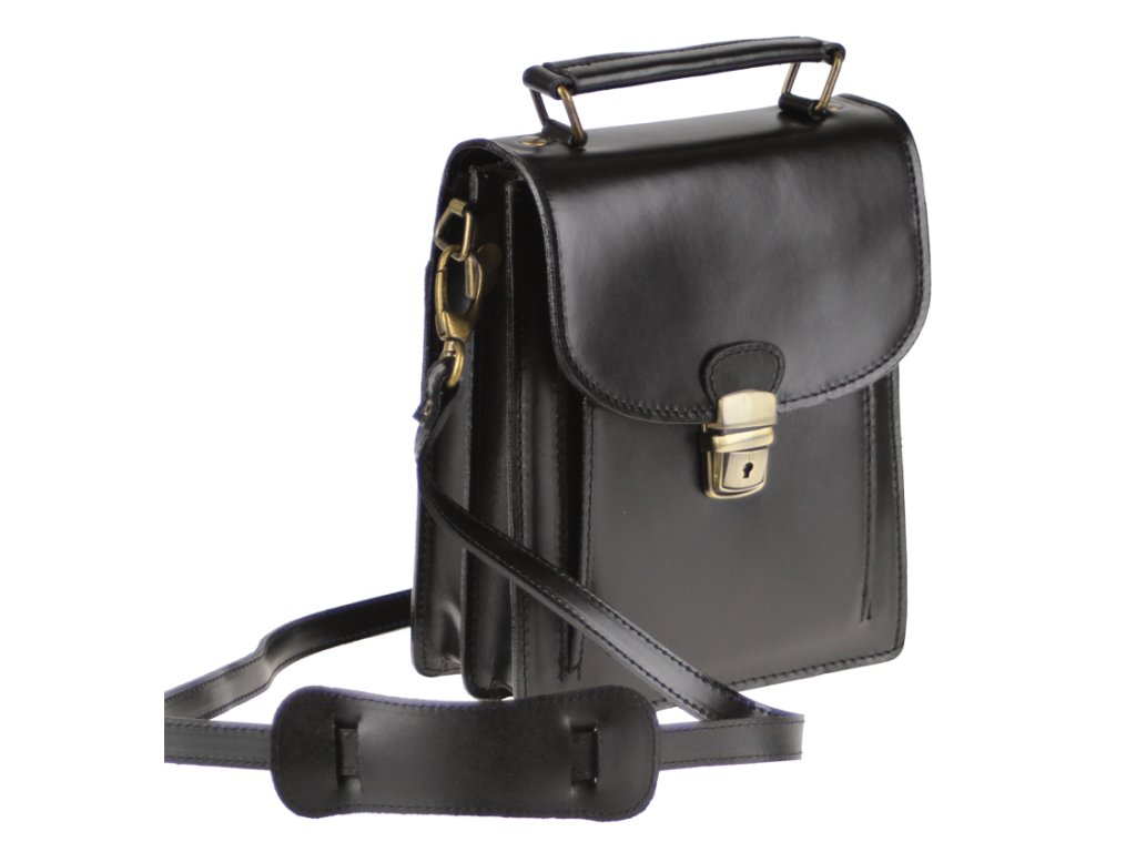 Menší kožená černá aktovka s popruhem přes rameno (cca 102 cm) se hodí na všechny věci, které potřebujete mít stále po ruce. Peněženka, doklady od auta, klíče a jiné drobnosti budete mít pohromadě. Aktovku lze uzamknout pomocí klíčku.