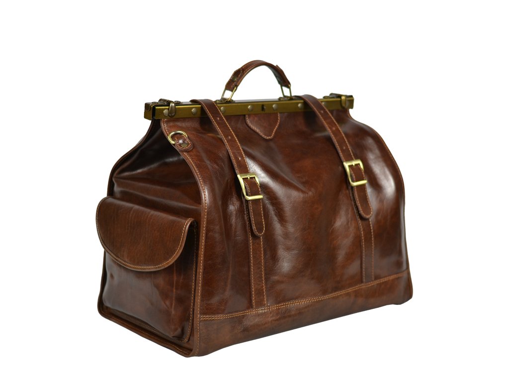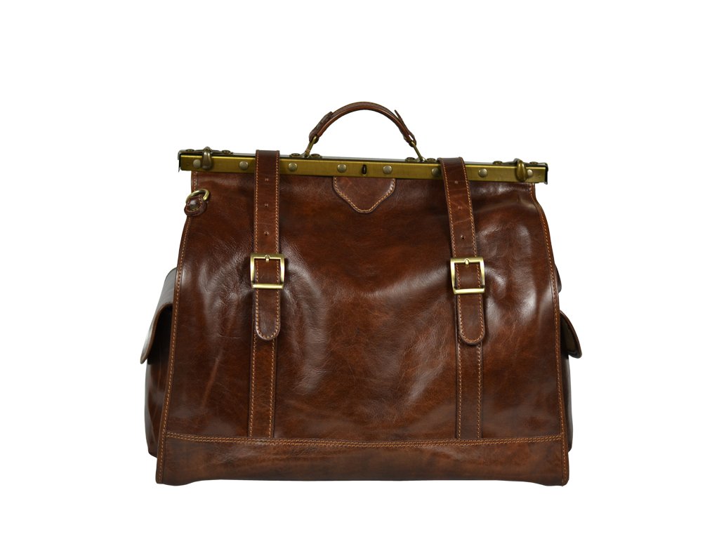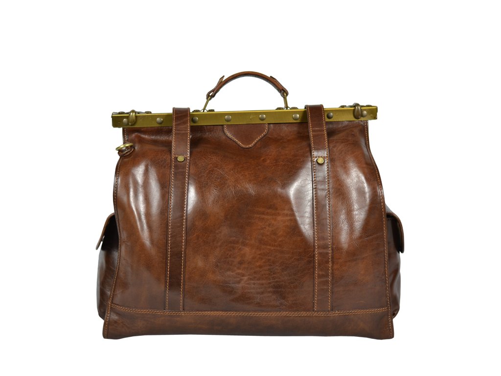 Luxusní cestovní taška vyrobená z kvalitní přírodní kůže, v hnědé barvě. Do této praktické cestovní tašky se Vám bez problému vejde vše, co potřebujete na cesty. Součástí tašky je přídavný popruh o délce 150 cm. Taška se uzavírá důmyslným originálním systémem.