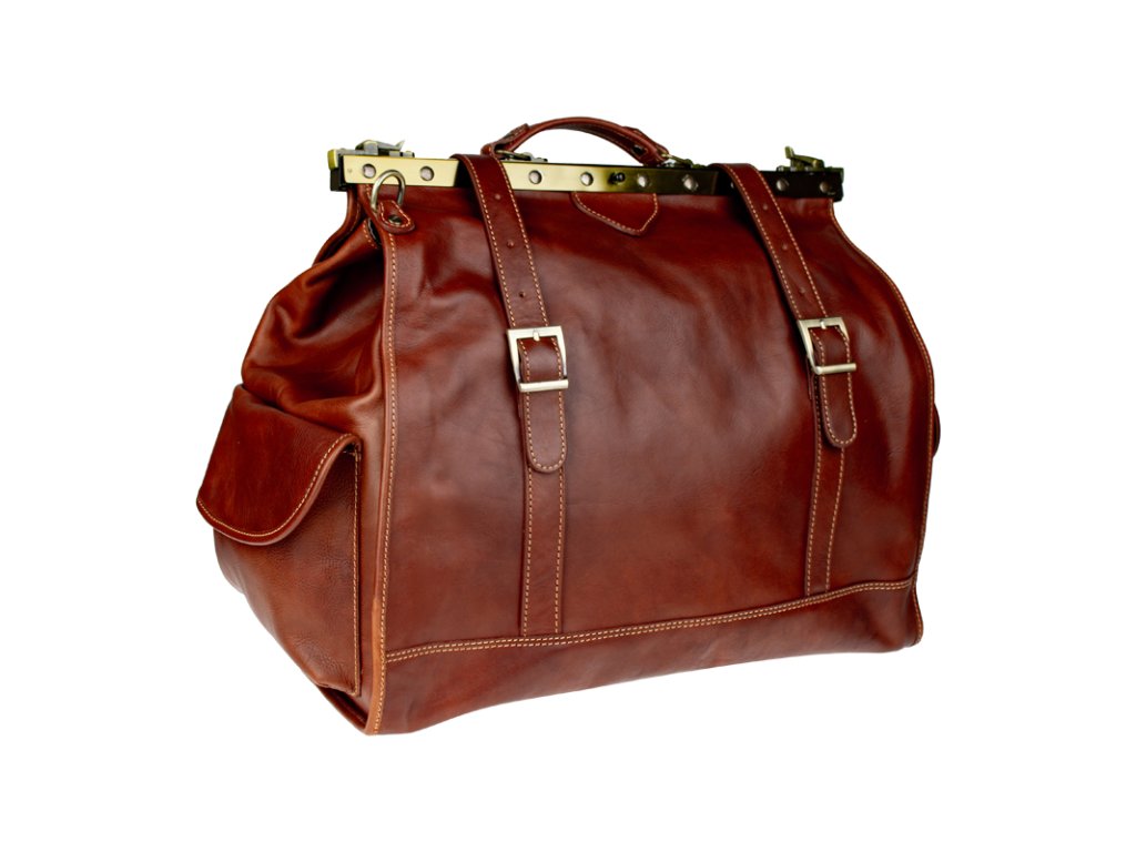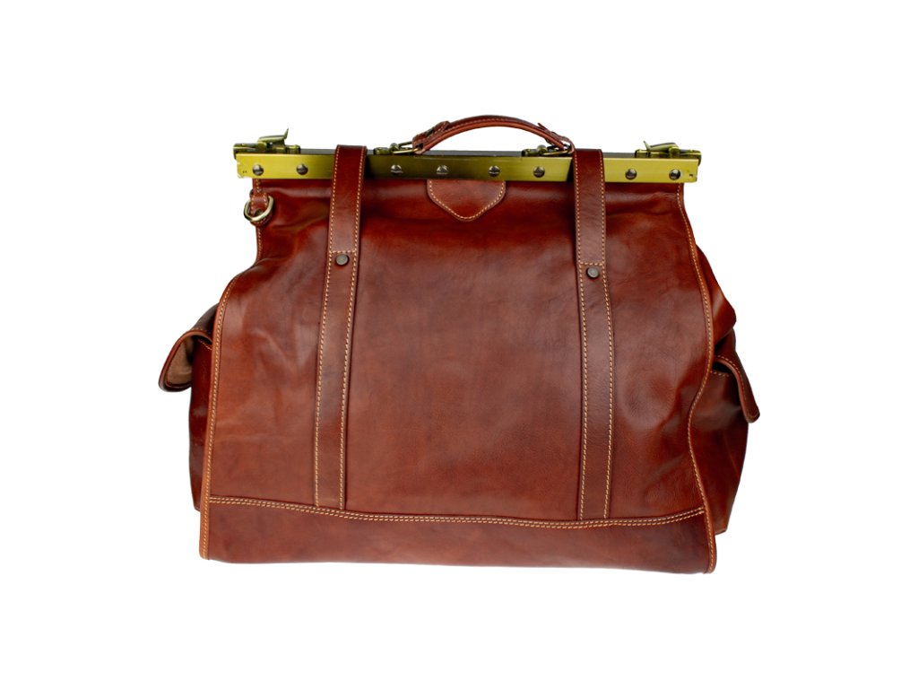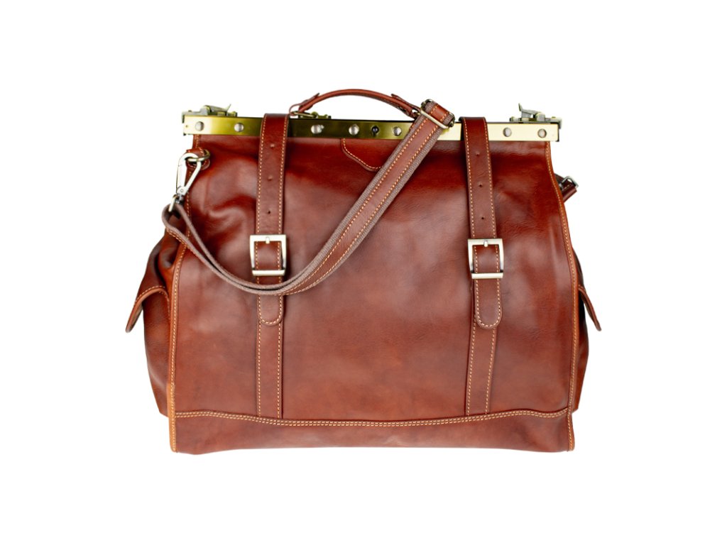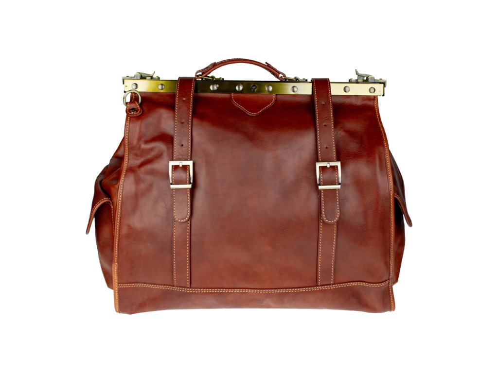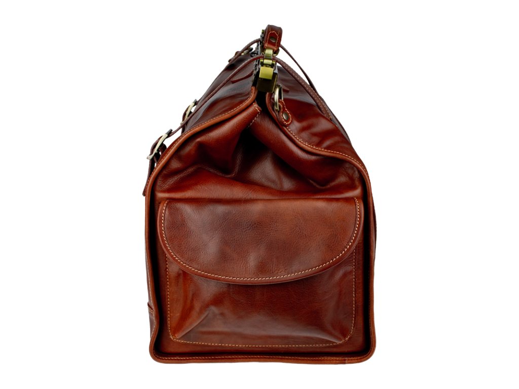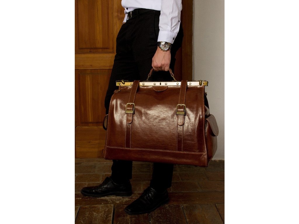 Luxusní cestovní taška vyrobená z kvalitní přírodní kůže, v hnědé barvě. Do této praktické cestovní tašky se Vám bez problému vejde vše, co potřebujete na cesty. Součástí tašky je přídavný popruh o délce 150 cm. Taška se uzavírá důmyslným originálním systémem.