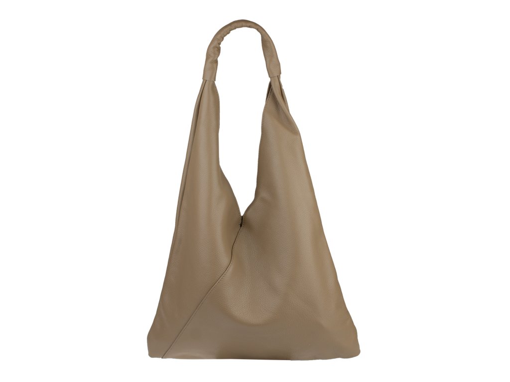 Velmi krásná kabelka trojúhelníkového tvaru, patří k našim nejoblíbenějším kabelkám. Kabelka má jednoduchý design bez zbytečných ozdob, je elegantní a dostatečně prostorná. Kabelka uvnitř disponuje dvěma pásky, které můžete zavázat a chránit tak Vaše cennosti.