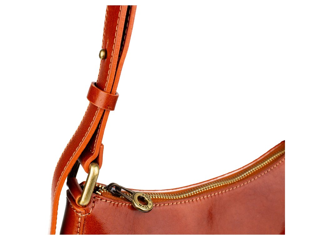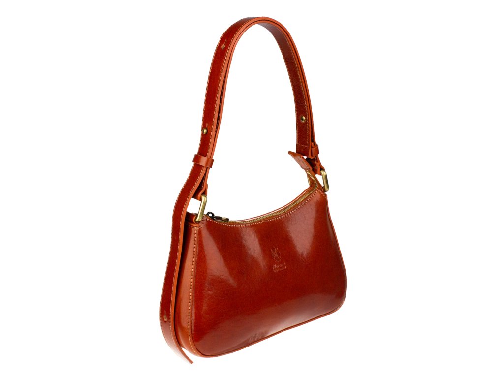Malá šikovná kabelka se zajímavým tvarem. Kabelka je vyrobená z pravé kůže, která velice dobře drží svůj tvar. Je vhodná na nošení přes rameno nebo cross-body (křížem).