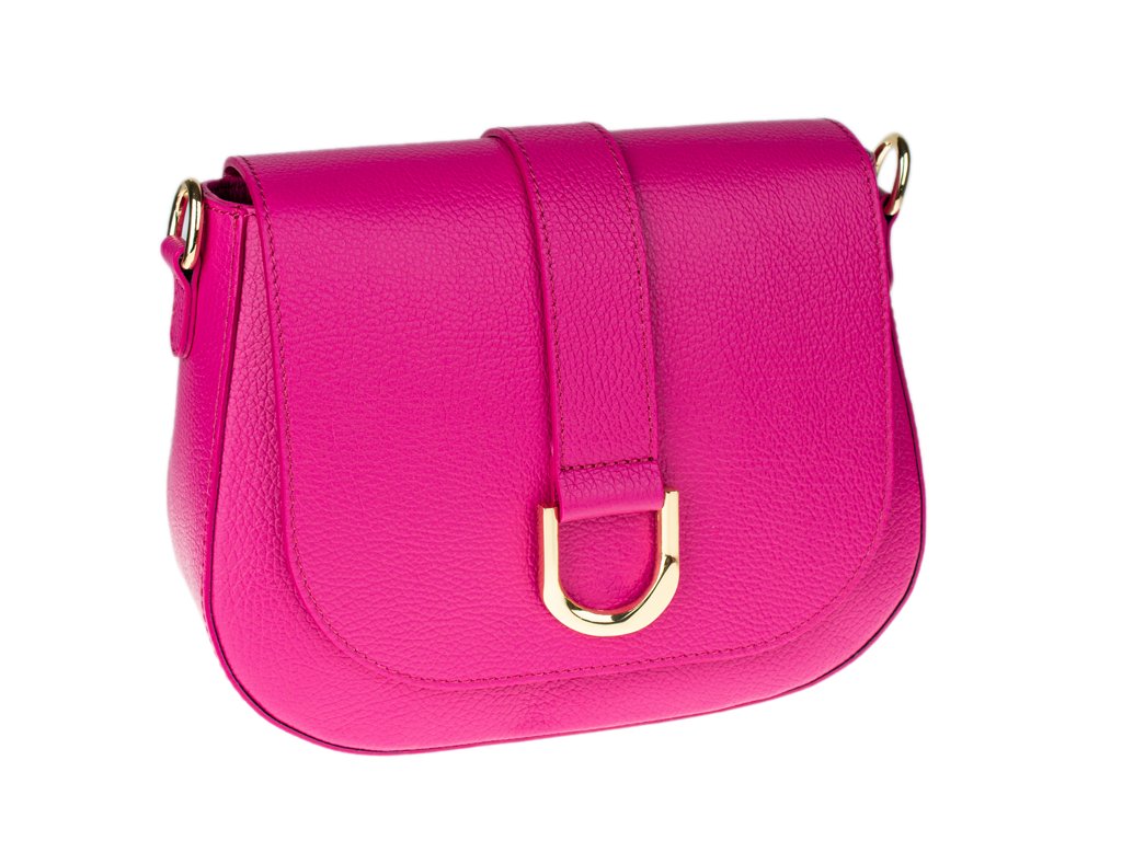 Růžová kabelka nositelná přes rameno či cross-body (křížem). Tato kožená kabelka je uzavíratelná na patentku a uvnitř nalezneme přihrádku na zip. Barva řetízku je stříbrná. Kabelka má nastavitelný popruh s maximální délkou cca 125 cm.