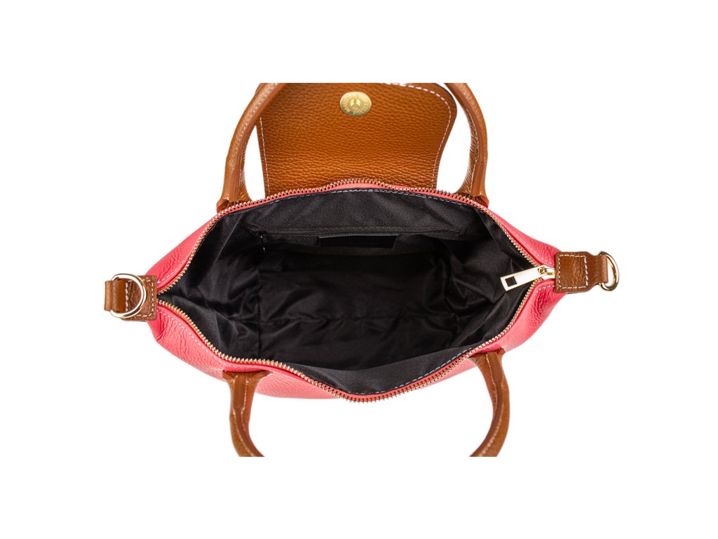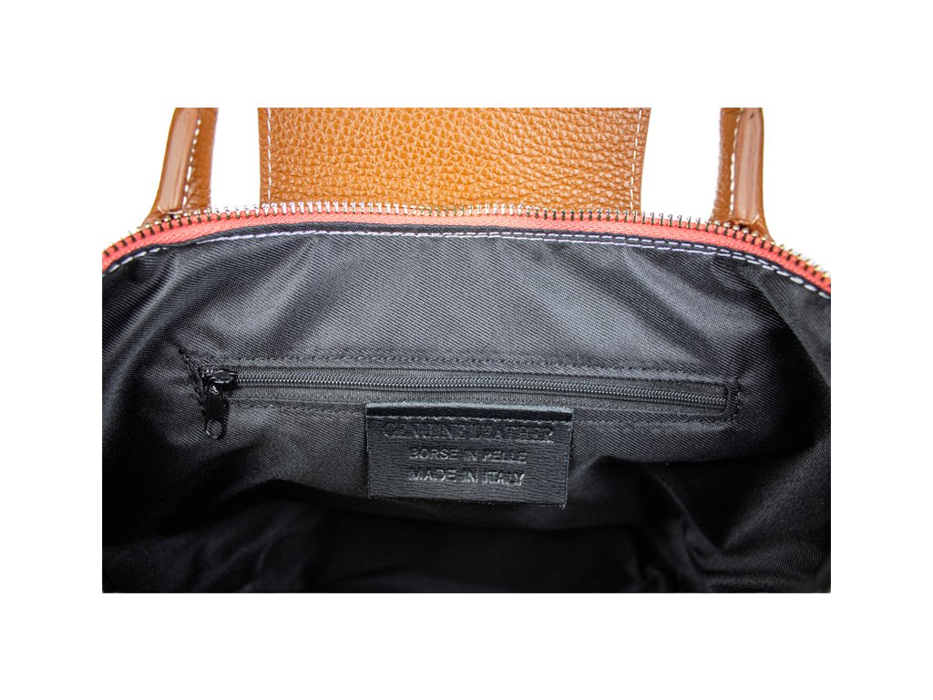 Praktická a prostorná kožená kabelka v hnědé barvě. Jednoduché provedení a velký prostor dělá tuto kabelku neobyčejně praktickou pro denní nošení. Vnitřek kabelky je vybaven kapsou na zip a dvěma malými přihrádkami.