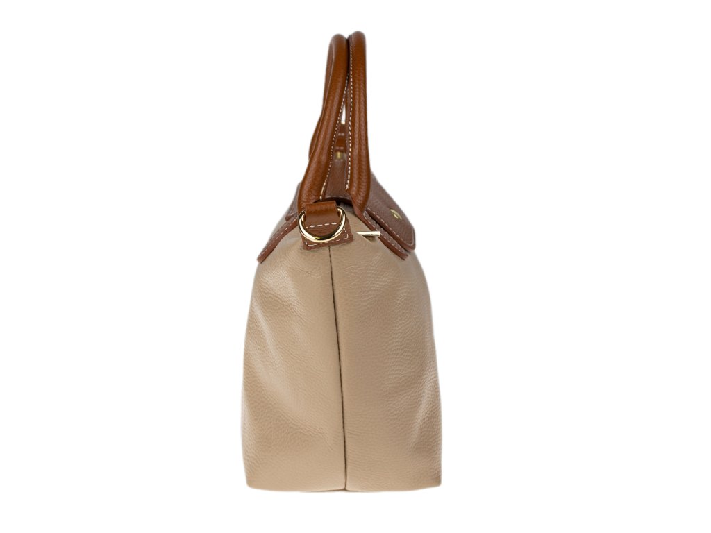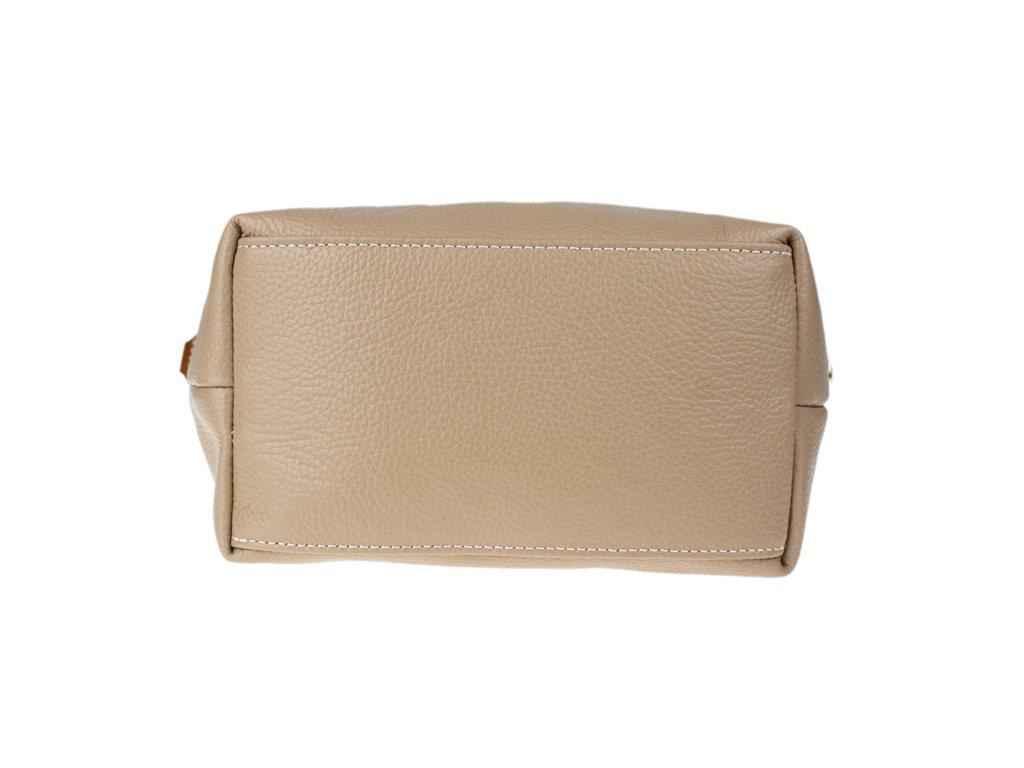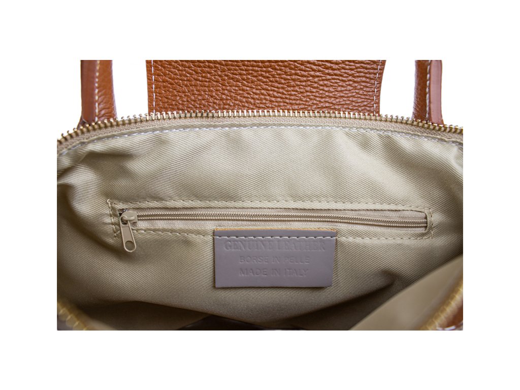 Praktická a prostorná kožená kabelka v hnědé barvě. Jednoduché provedení a velký prostor dělá tuto kabelku neobyčejně praktickou pro denní nošení. Vnitřek kabelky je vybaven kapsou na zip a dvěma malými přihrádkami.