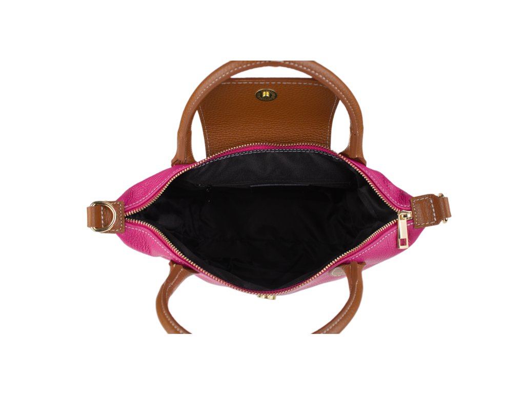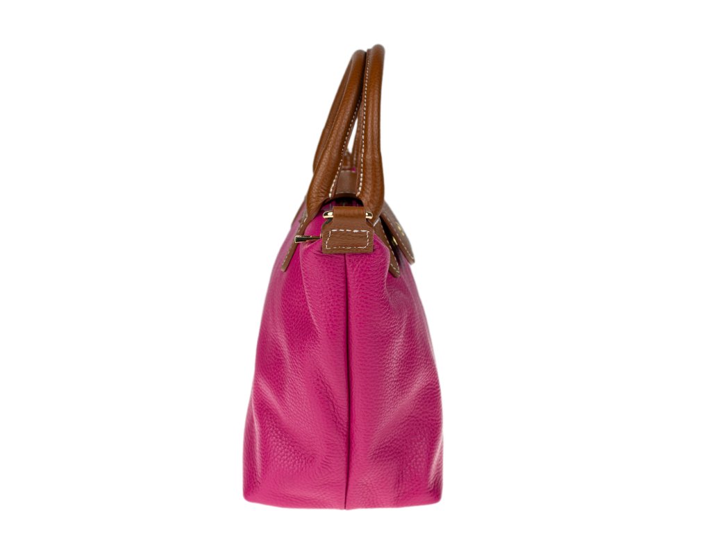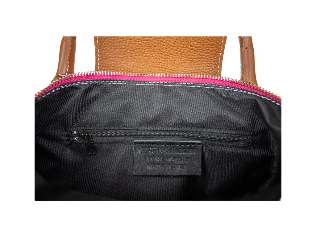 Praktická a prostorná kožená kabelka v hnědé barvě. Jednoduché provedení a velký prostor dělá tuto kabelku neobyčejně praktickou pro denní nošení. Vnitřek kabelky je vybaven kapsou na zip a dvěma malými přihrádkami.