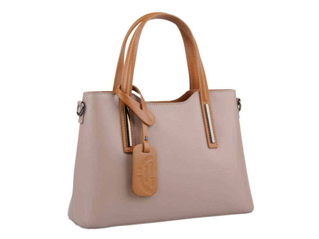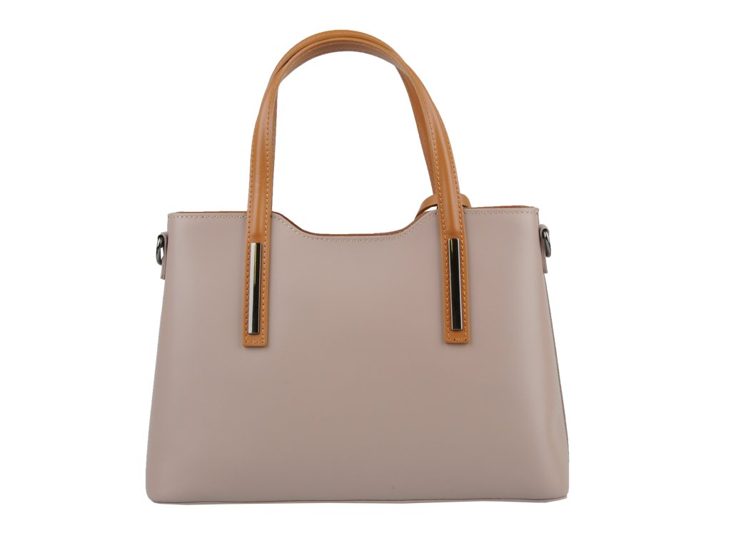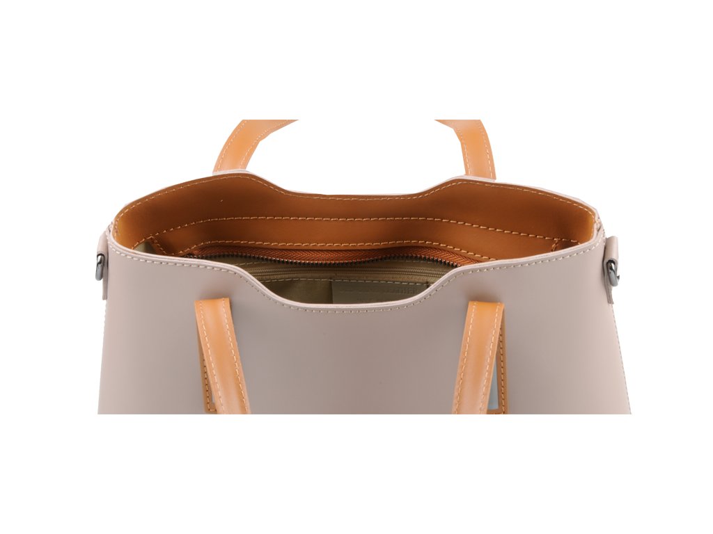 Praktická kabelka v okrovém provedení pro každodenní nošení vyrobená z pevné pravé kůže. Nosí se v ruce nebo na rameni. Kabelka je uzavíratelná na zip. Součástí balení je přídavný nastavitelný popruh - cca 107 cm v plné délce. Uvnitř kabelky najdeme přepážku uprostřed, která zároveň slouží jako kapsa na zip, a na bočních stěnách pak kapsu na zip a 2 malé kapsy vhodné např. pro mobil a peněženku.