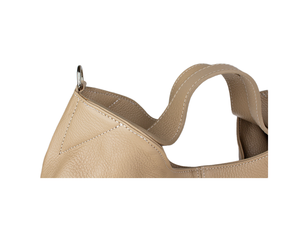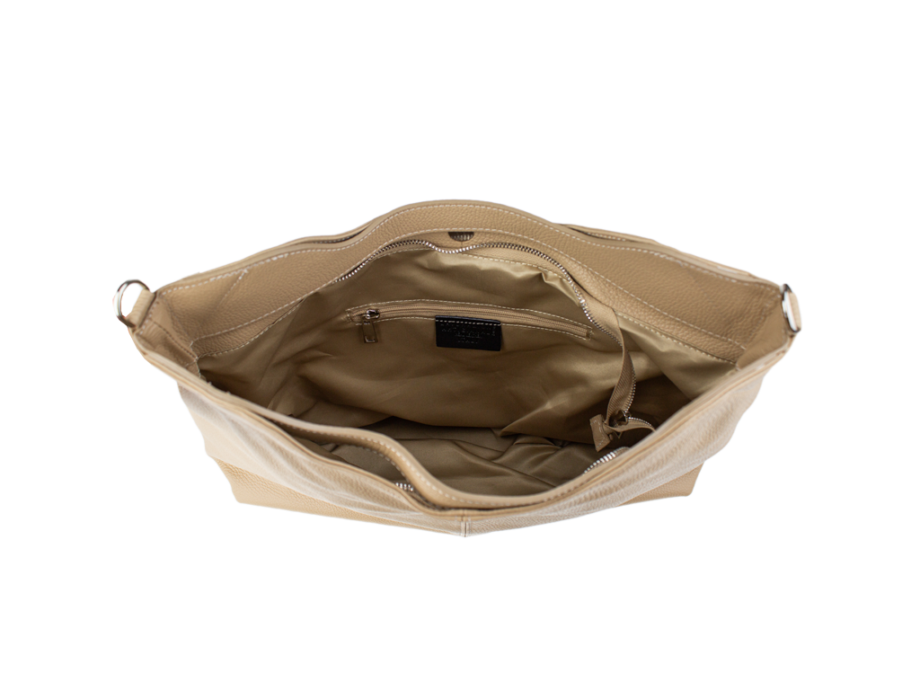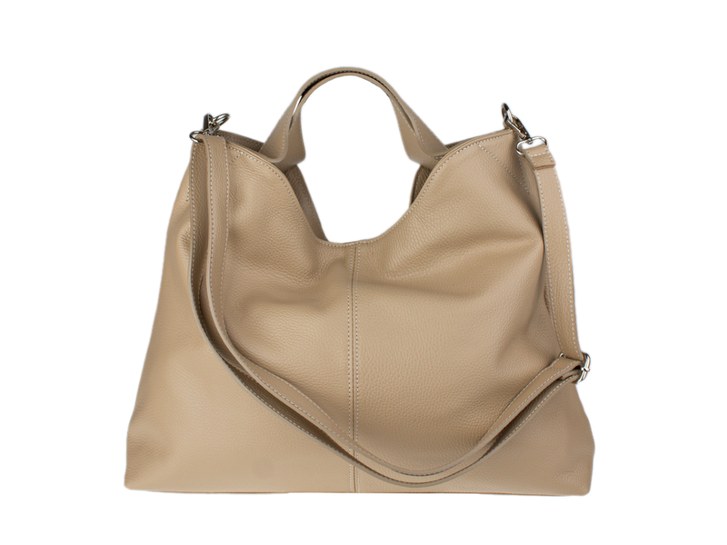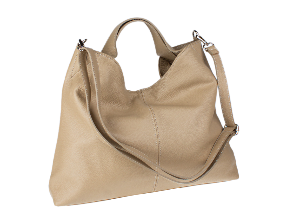 Krásná praktická kabelka vhodná i pro volný čas má nastavitelná ucha a je nositelná přes rameno; je vyrobena z kvalitní měkké kůže v černé barvě. Tato kožená kabelka je uzavíratelná na magnetický patentek. Uvnitř kabelky najdeme přepážku uprostřed, která zároveň slouží jako kapsa na zip a na bočních stěnách pak kapsu na zip a 2 malé kapsy. Hloubka její dna je 12 cm.