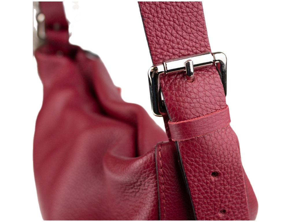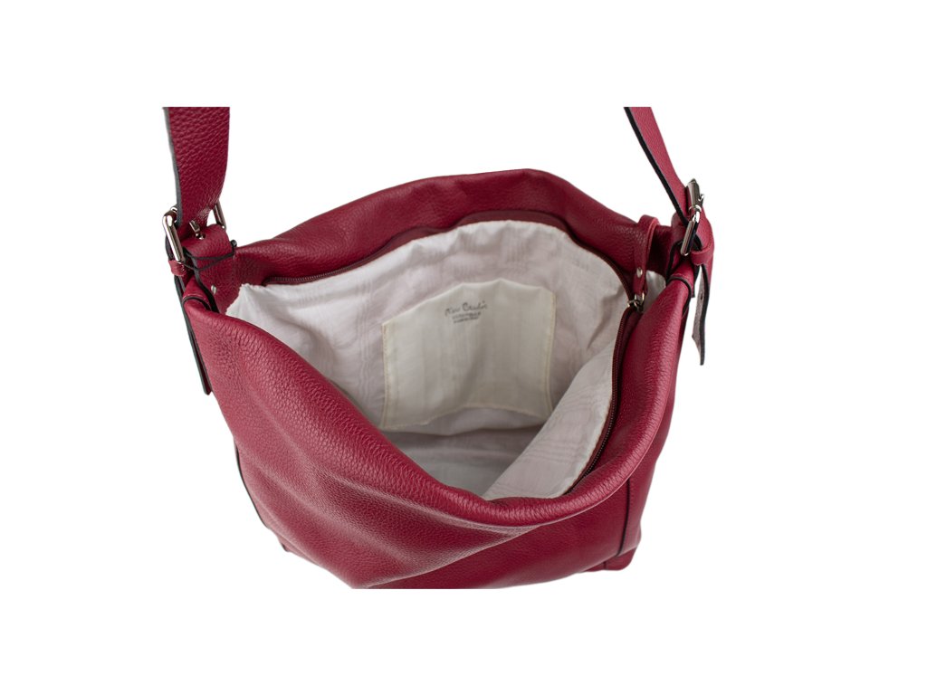 Praktická kabelka vyrobena z hovězí kůže v červené barvě. Je vhodná na nošení do ruky i přes rameno. Součástí balení je přídavný nastavitelný pásek o délce 95cm. Uzavírá se pomocí dvou magnetických patentek a zipu. Vnitřek kabelky disponuje malou kapsičkou a dvěma přihrádkami např. pro Váš mobilní telefon nebo klíče.