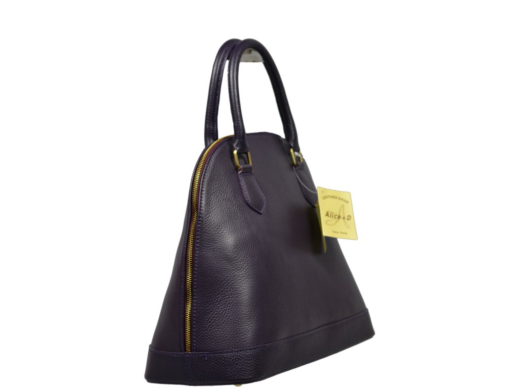 Elegantní kabelka do ruky s moderním jednoduchým designem v tmavě fialové barvě. Tato oblíbená kožená kabelka je uzavíratelná na zip po celém jejím (horním) obvodu. Vnitřek nám může nabídnout kapsu na zip a naproti ní další malou kapsu. Patří k ní přídavný pásek v délce cca 100 cm.