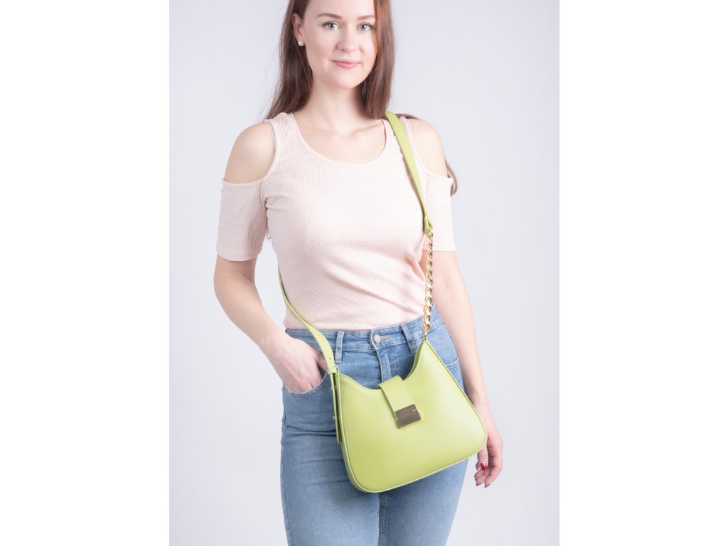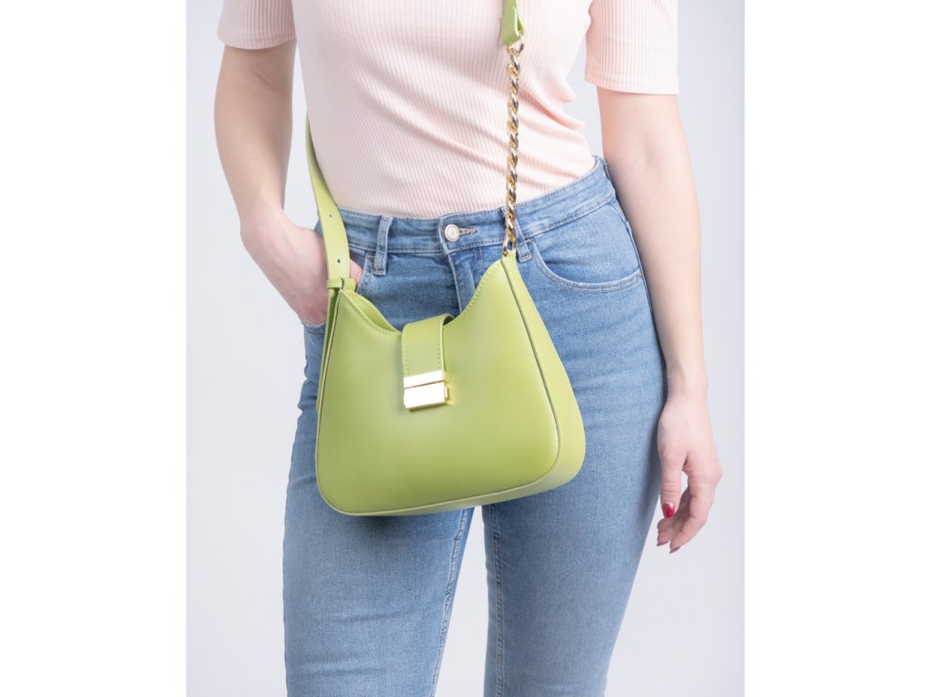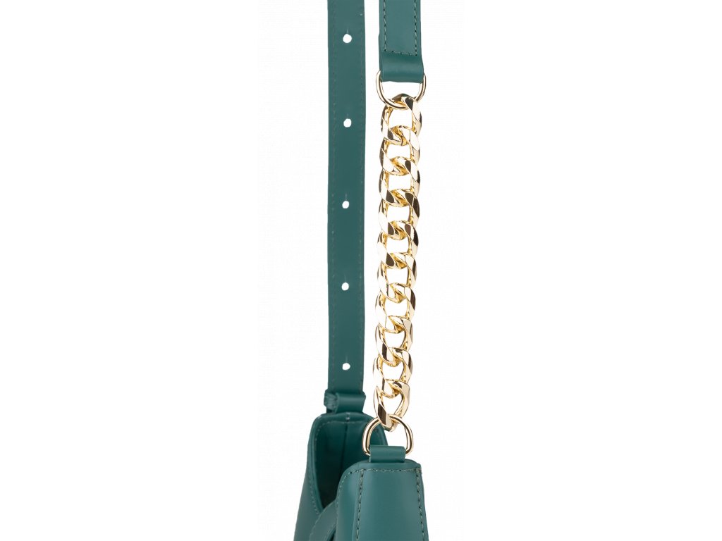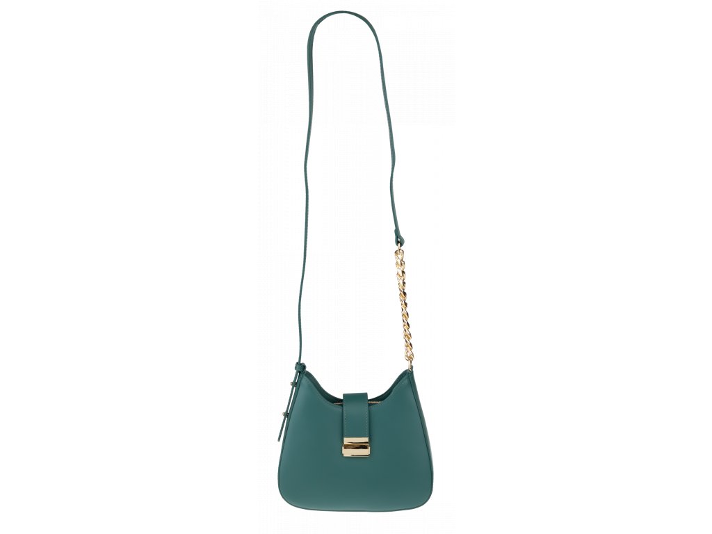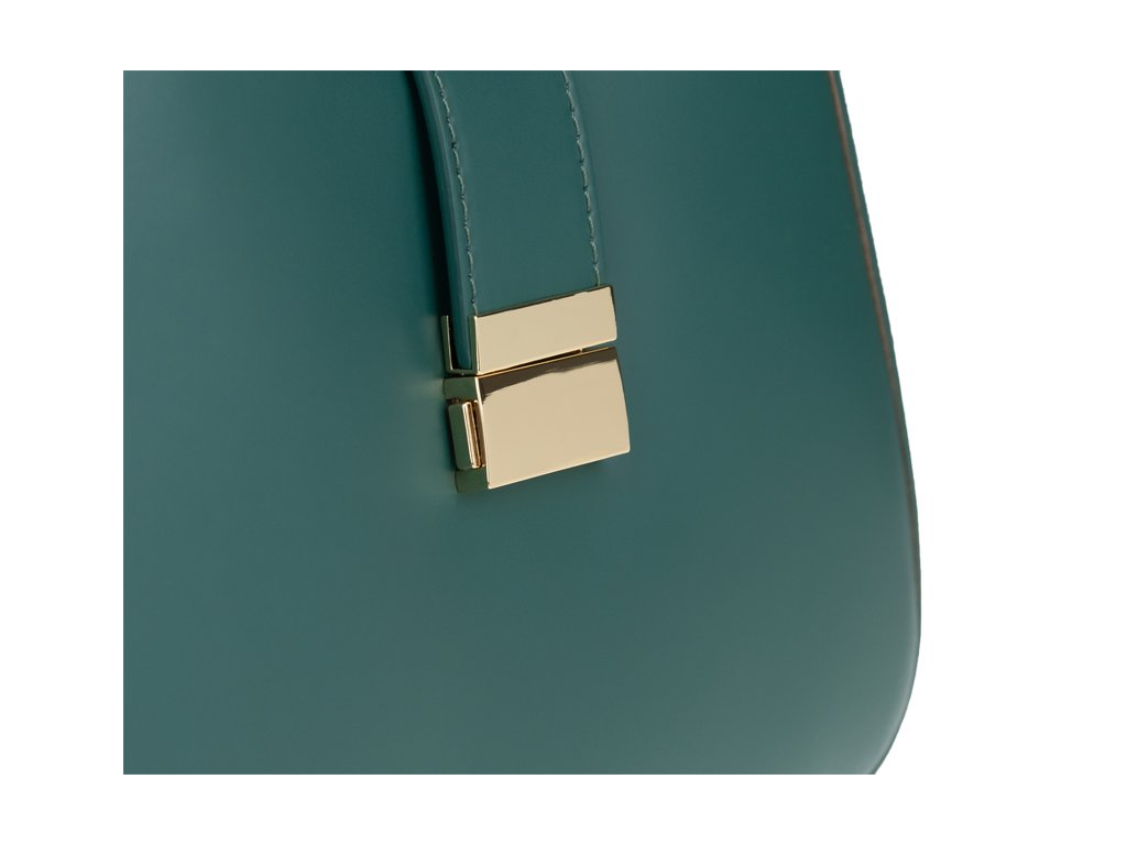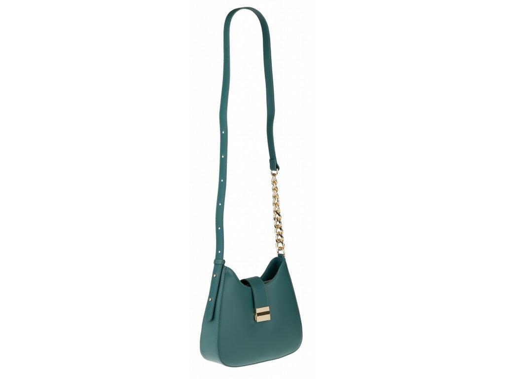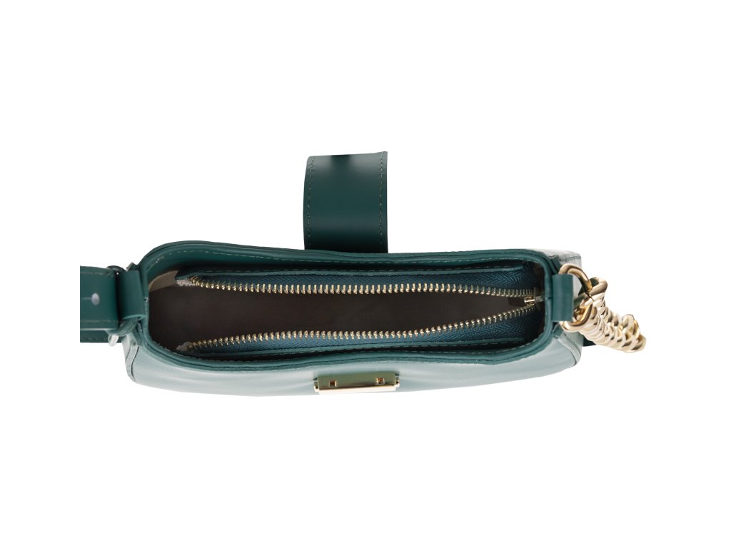 Krásná zelená kabelka z hladké kůže. Tato originální kabelka, která skvěle drží svůj tvar, určená k nošení přes rameno, je vhodným doplňkem pro pravidelné nošení. Kabelka se uzavírá na klopu a na zip.