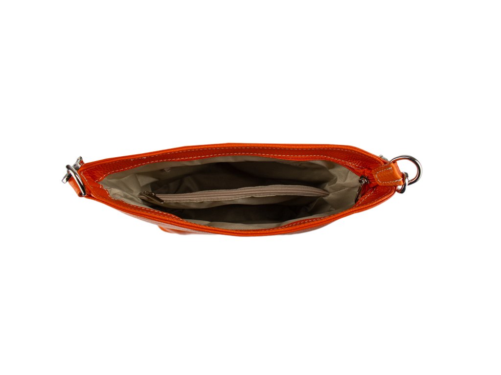 Klasická praktická kabelka s jednoduchým designem a stylovým přídavným popruhem. Nositelná přes rameno nebo crossbody. Kabelka je uzavíratelná na zip a je vyrobena z pravé poctivé kůže. Uvnitř kabelky najdeme přepážku uprostřed, která zároveň slouží jako kapsa na zip, a na bočních stěnách pak kapsu na zip a na druhé straně další malou kapsu.