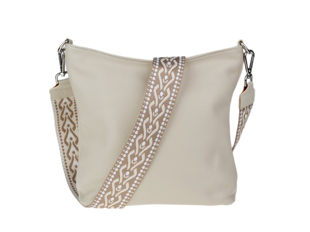 Klasická praktická kabelka s jednoduchým designem a stylovým přídavným popruhem. Nositelná přes rameno nebo crossbody. Kabelka je uzavíratelná na zip a je vyrobena z pravé poctivé kůže. Uvnitř kabelky najdeme přepážku uprostřed, která zároveň slouží jako kapsa na zip, a na bočních stěnách pak kapsu na zip a na druhé straně další malou kapsu.
