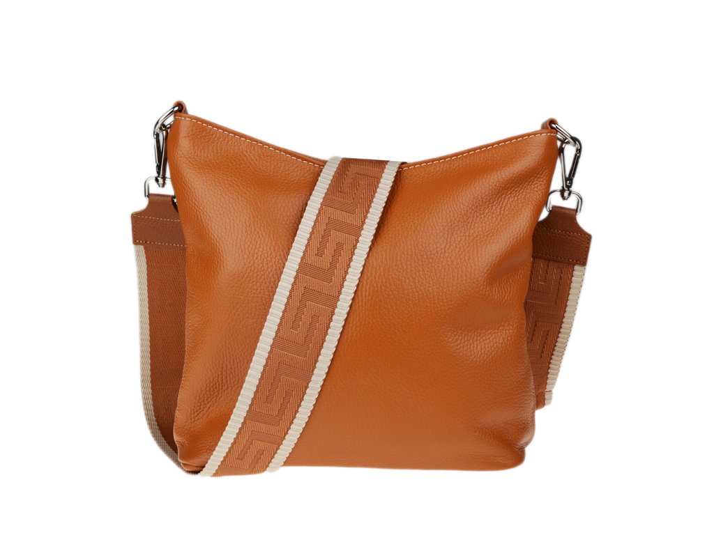 Klasická praktická kabelka s jednoduchým designem a stylovým přídavným popruhem. Nositelná přes rameno nebo crossbody. Kabelka je uzavíratelná na zip a je vyrobena z pravé poctivé kůže. Uvnitř kabelky najdeme přepážku uprostřed, která zároveň slouží jako kapsa na zip, a na bočních stěnách pak kapsu na zip a na druhé straně další malou kapsu.