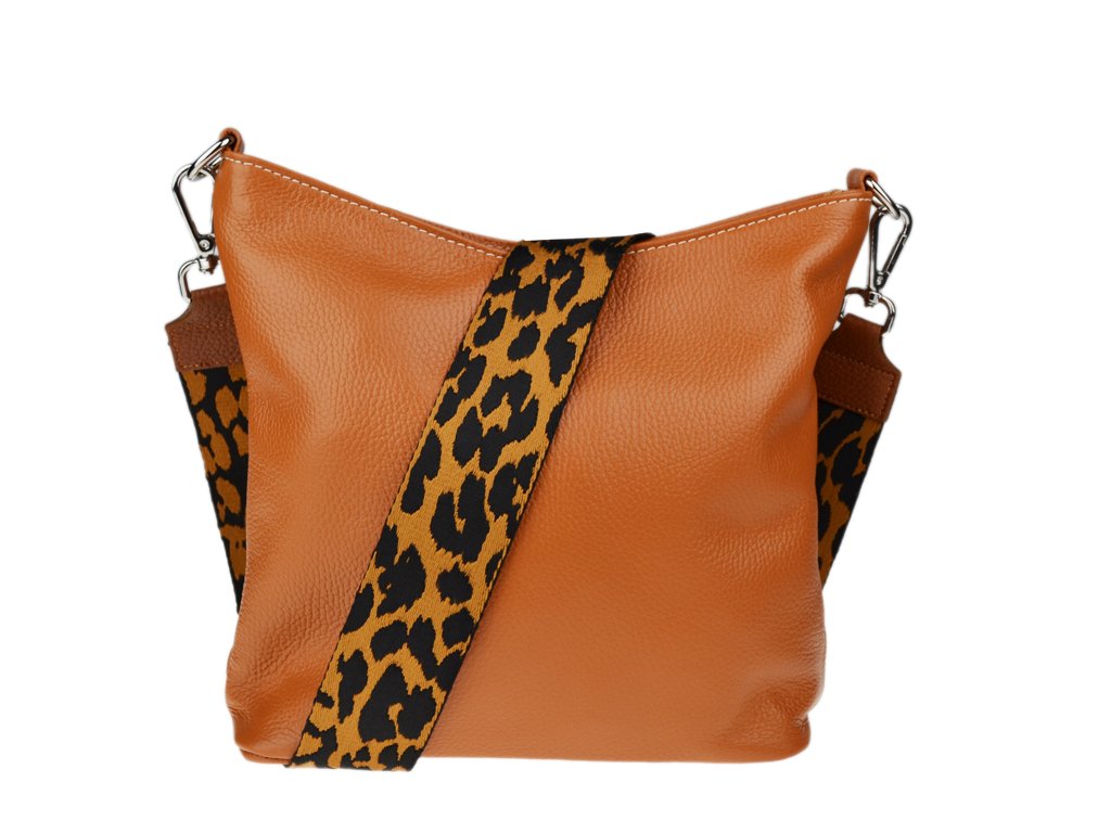 Klasická praktická kabelka s jednoduchým designem a stylovým přídavným popruhem. Nositelná přes rameno nebo crossbody. Kabelka je uzavíratelná na zip a je vyrobena z pravé poctivé kůže. Uvnitř kabelky najdeme přepážku uprostřed, která zároveň slouží jako kapsa na zip, a na bočních stěnách pak kapsu na zip a na druhé straně další malou kapsu.