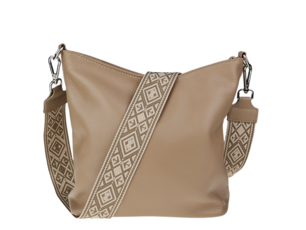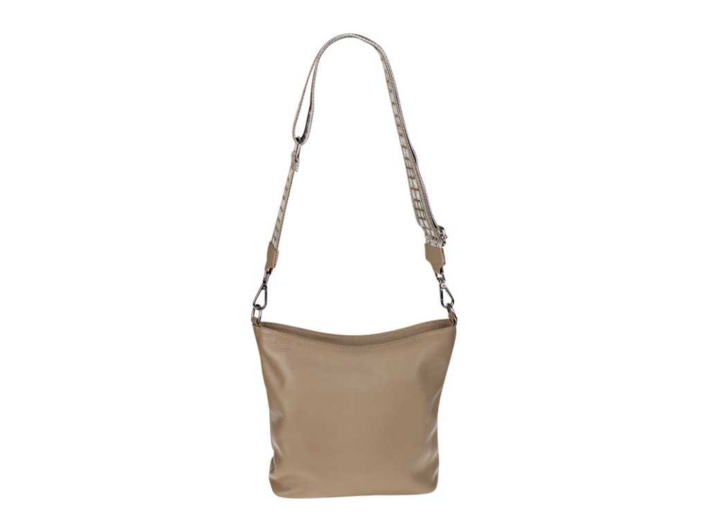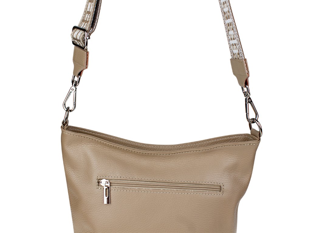 Klasická praktická kabelka s jednoduchým designem a stylovým přídavným popruhem. Nositelná přes rameno nebo crossbody. Kabelka je uzavíratelná na zip a je vyrobena z pravé poctivé kůže. Uvnitř kabelky najdeme přepážku uprostřed, která zároveň slouží jako kapsa na zip, a na bočních stěnách pak kapsu na zip a na druhé straně další malou kapsu.