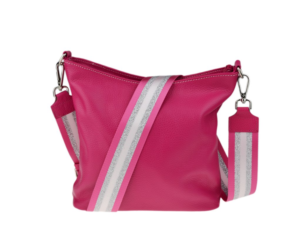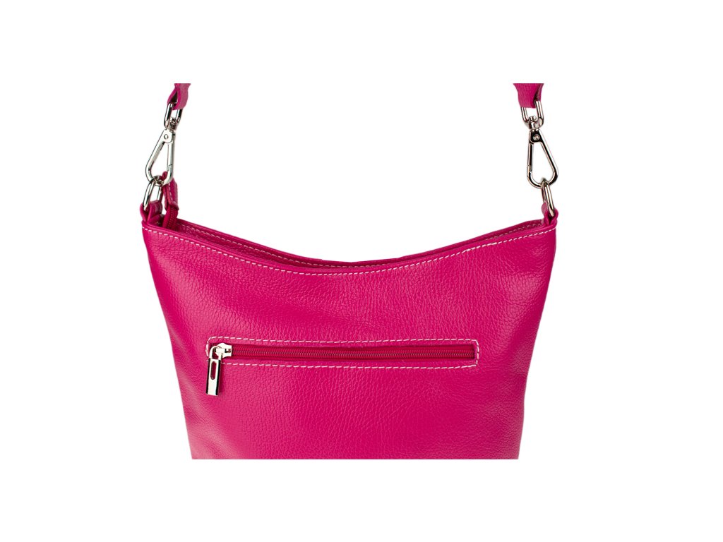 Klasická praktická kabelka s jednoduchým designem a stylovým přídavným popruhem. Nositelná přes rameno nebo crossbody. Kabelka je uzavíratelná na zip a je vyrobena z pravé poctivé kůže. Uvnitř kabelky najdeme přepážku uprostřed, která zároveň slouží jako kapsa na zip, a na bočních stěnách pak kapsu na zip a na druhé straně další malou kapsu.