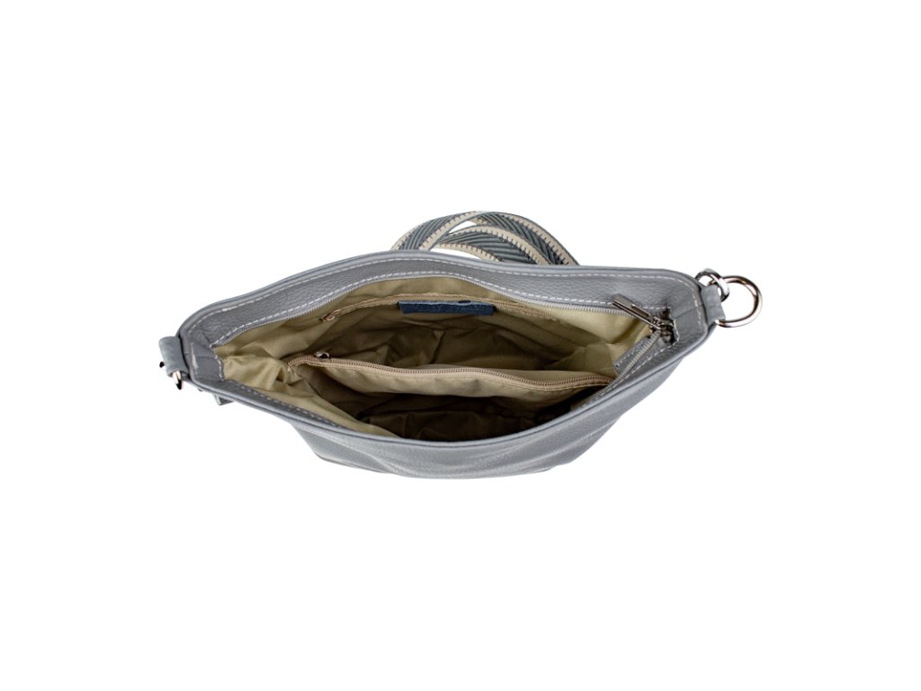 Klasická praktická kabelka s jednoduchým designem a stylovým přídavným popruhem. Nositelná přes rameno nebo crossbody. Kabelka je uzavíratelná na zip a je vyrobena z pravé poctivé kůže. Uvnitř kabelky najdeme přepážku uprostřed, která zároveň slouží jako kapsa na zip, a na bočních stěnách pak kapsu na zip a na druhé straně další malou kapsu.