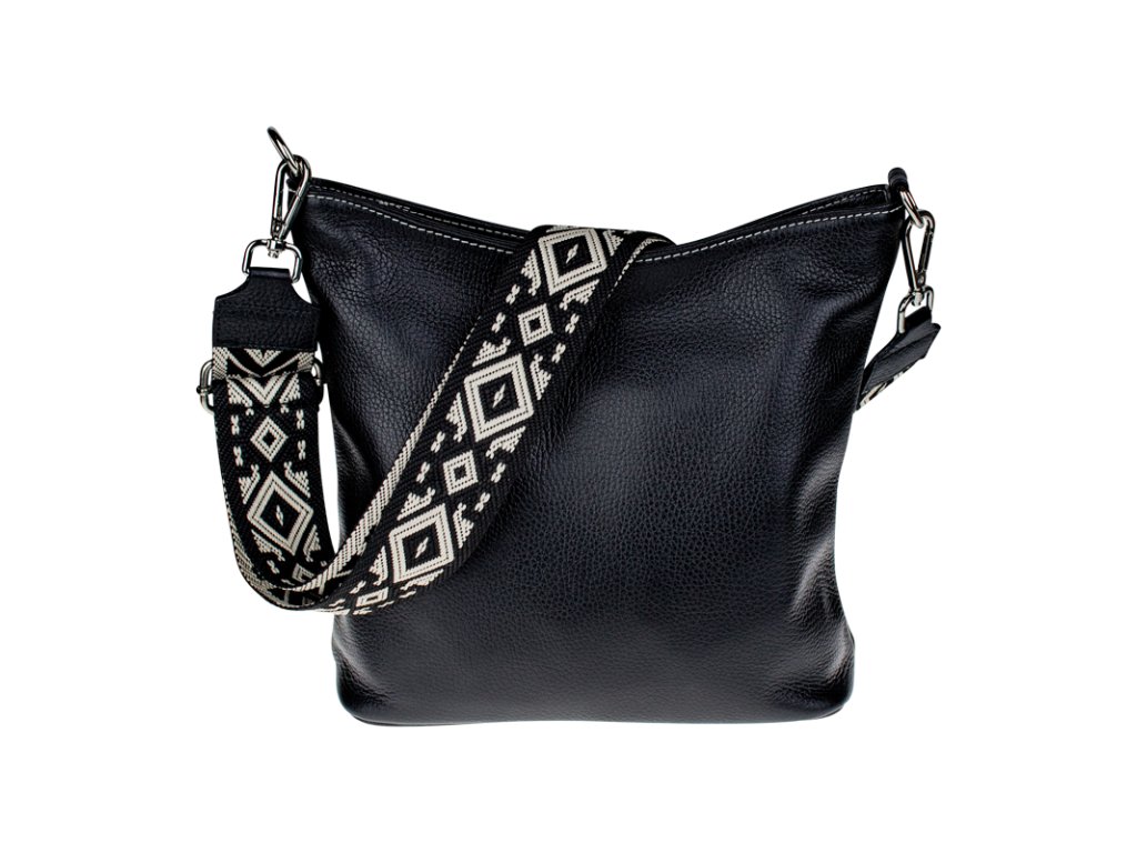 Klasická praktická kabelka s jednoduchým designem a stylovým přídavným popruhem. Nositelná přes rameno nebo crossbody. Kabelka je uzavíratelná na zip a je vyrobena z pravé poctivé kůže. Uvnitř kabelky najdeme přepážku uprostřed, která zároveň slouží jako kapsa na zip, a na bočních stěnách pak kapsu na zip a na druhé straně další malou kapsu.