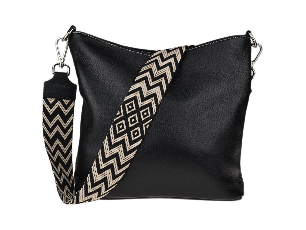 Klasická praktická kabelka s jednoduchým designem a stylovým přídavným popruhem. Nositelná přes rameno nebo crossbody. Kabelka je uzavíratelná na zip a je vyrobena z pravé poctivé kůže. Uvnitř kabelky najdeme přepážku uprostřed, která zároveň slouží jako kapsa na zip, a na bočních stěnách pak kapsu na zip a na druhé straně další malou kapsu.