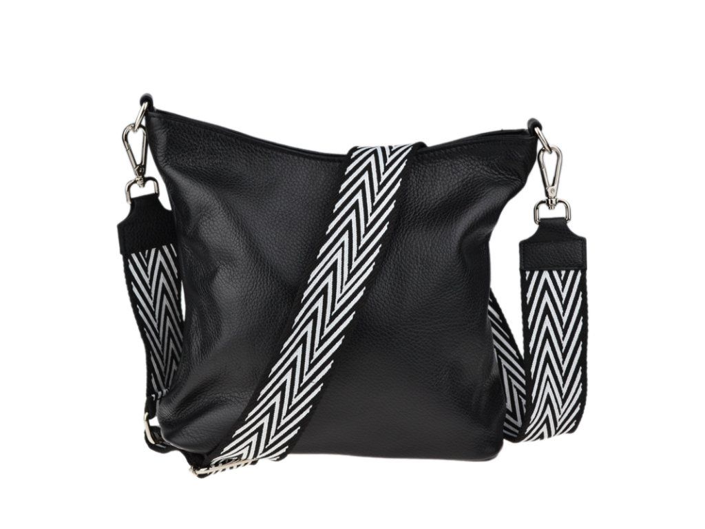 Klasická praktická kabelka s jednoduchým designem a stylovým přídavným popruhem. Nositelná přes rameno nebo crossbody. Kabelka je uzavíratelná na zip a je vyrobena z pravé poctivé kůže. Uvnitř kabelky najdeme přepážku uprostřed, která zároveň slouží jako kapsa na zip, a na bočních stěnách pak kapsu na zip a na druhé straně další malou kapsu.
