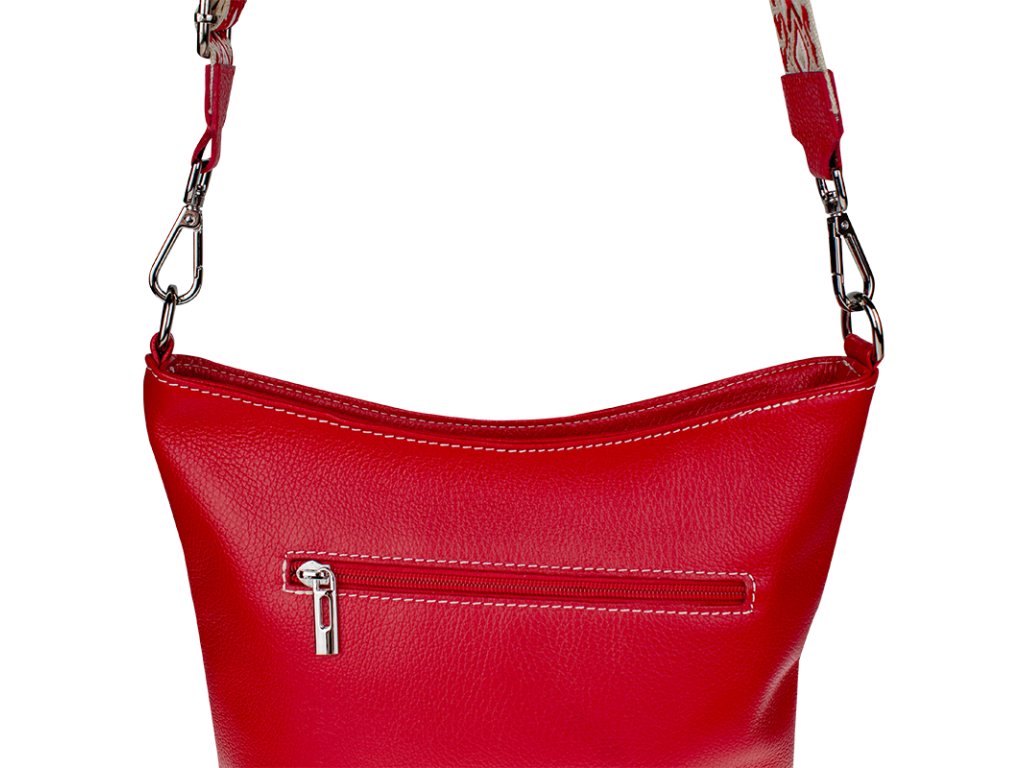 Klasická praktická kabelka s jednoduchým designem a stylovým přídavným popruhem. Nositelná přes rameno nebo crossbody. Kabelka je uzavíratelná na zip a je vyrobena z pravé poctivé kůže. Uvnitř kabelky najdeme přepážku uprostřed, která zároveň slouží jako kapsa na zip, a na bočních stěnách pak kapsu na zip a na druhé straně další malou kapsu.