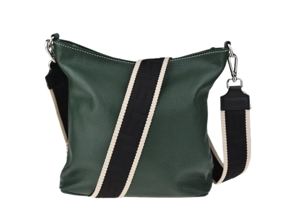Klasická praktická kabelka s jednoduchým designem a stylovým přídavným popruhem. Nositelná přes rameno nebo crossbody. Kabelka je uzavíratelná na zip a je vyrobena z pravé poctivé kůže. Uvnitř kabelky najdeme přepážku uprostřed, která zároveň slouží jako kapsa na zip, a na bočních stěnách pak kapsu na zip a na druhé straně další malou kapsu.