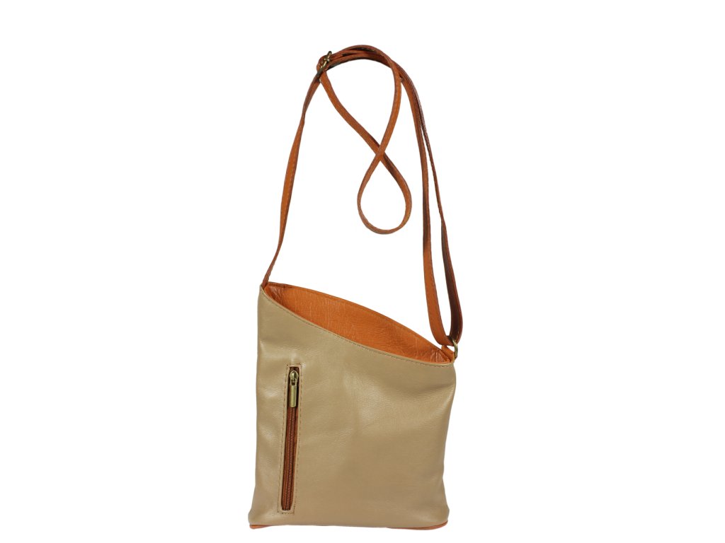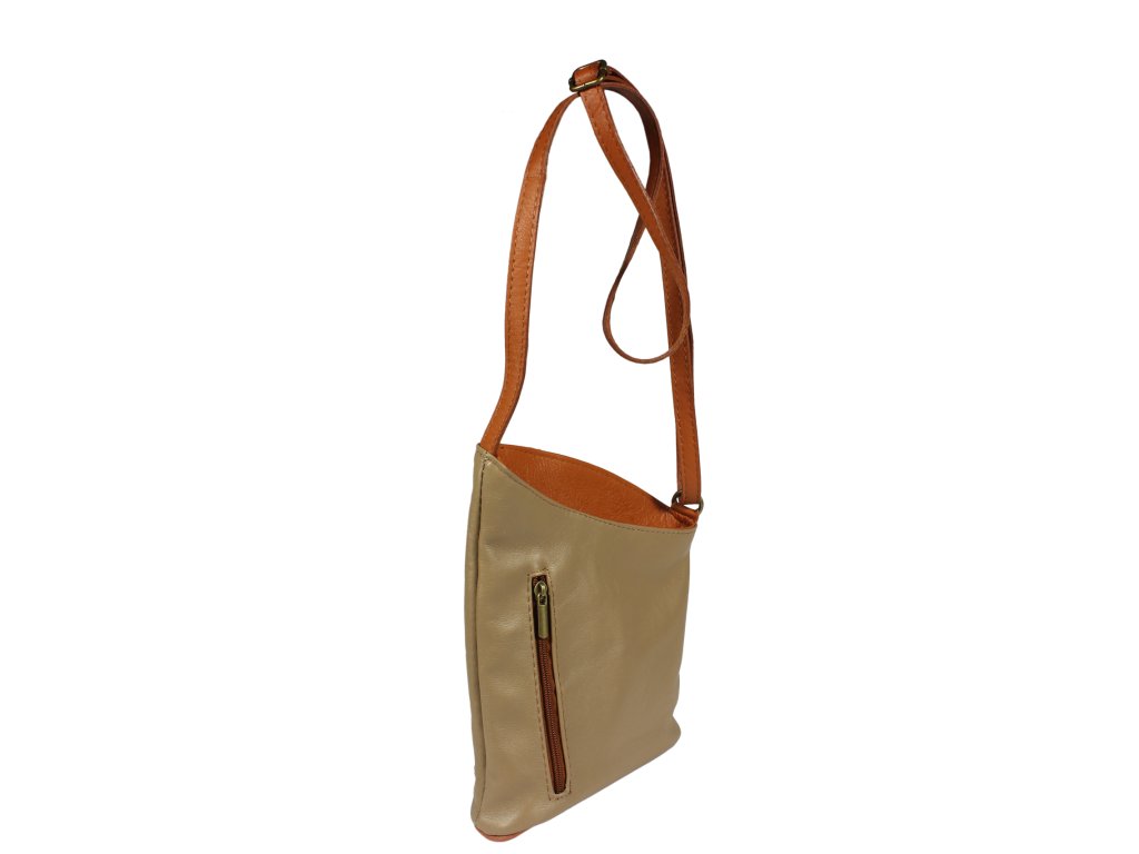 Malá a velmi praktická kabelka pro každodenní nošení, která Vás osloví zejména svou jednoduchostí a zajímavým tvarem. Je vyrobena z pravé hladké kůže a uzavírá se pomocí zipu. Díky nastavitelnému popruhu je možné kabelku nosit přes rameno nebo cross-body (křížem). Z vnější strany nabízí dvě kapsy na zip. Kapsa na přední straně se uzavírá vertikálně a na zadní straně horizontálně. Uvnitř kabelka disponuje ještě jednou malou kapsou na zip, vhodným například pro Váš mobil nebo klíče.
