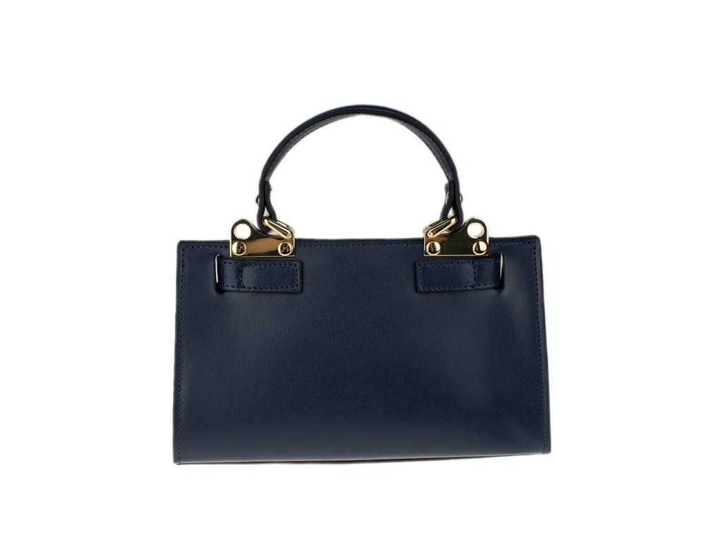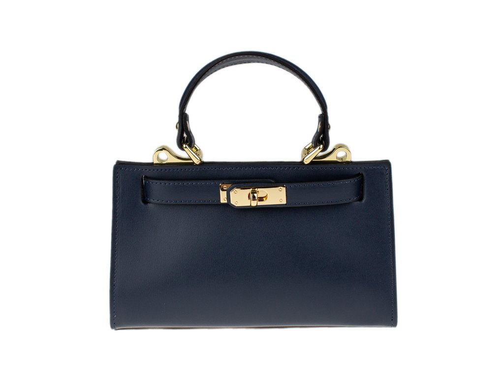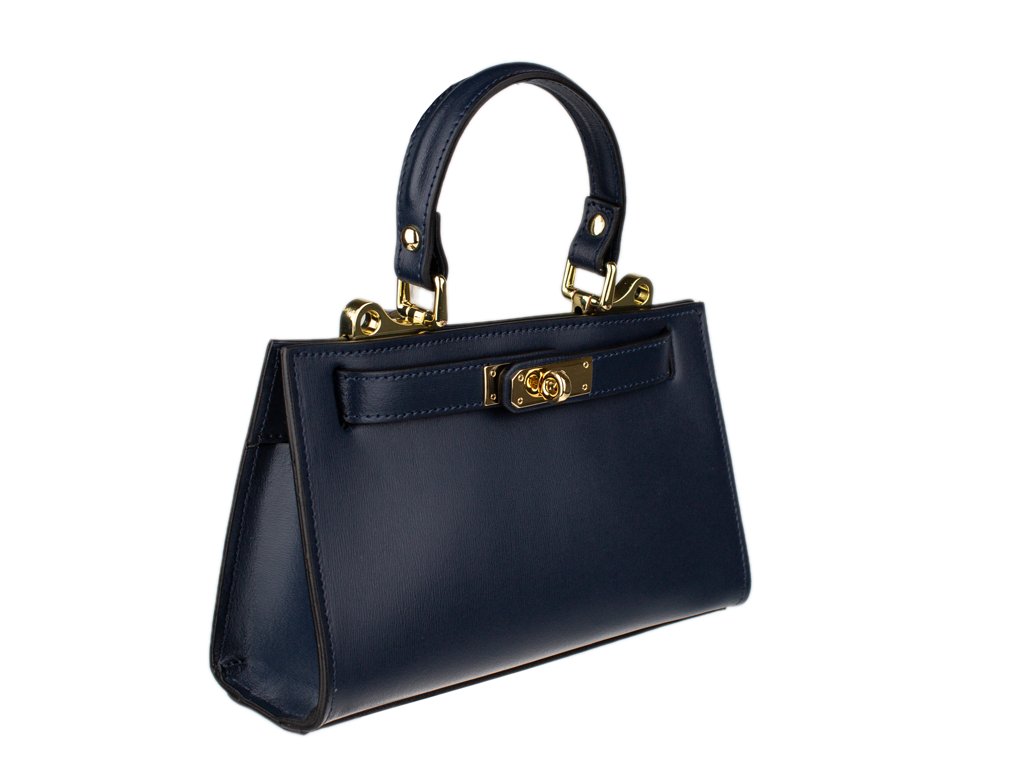 Malá kabelka z pevné kůže v modré barvě. Kabelku lze nosit v ruce nebo přes rameno. Max. délka přídavného pásku je 115 cm. Kabelka je vybavena důmyslným a elegantním zapínáním. Uvnitř kabelky nalezneme kapsu na mobil či klíče.