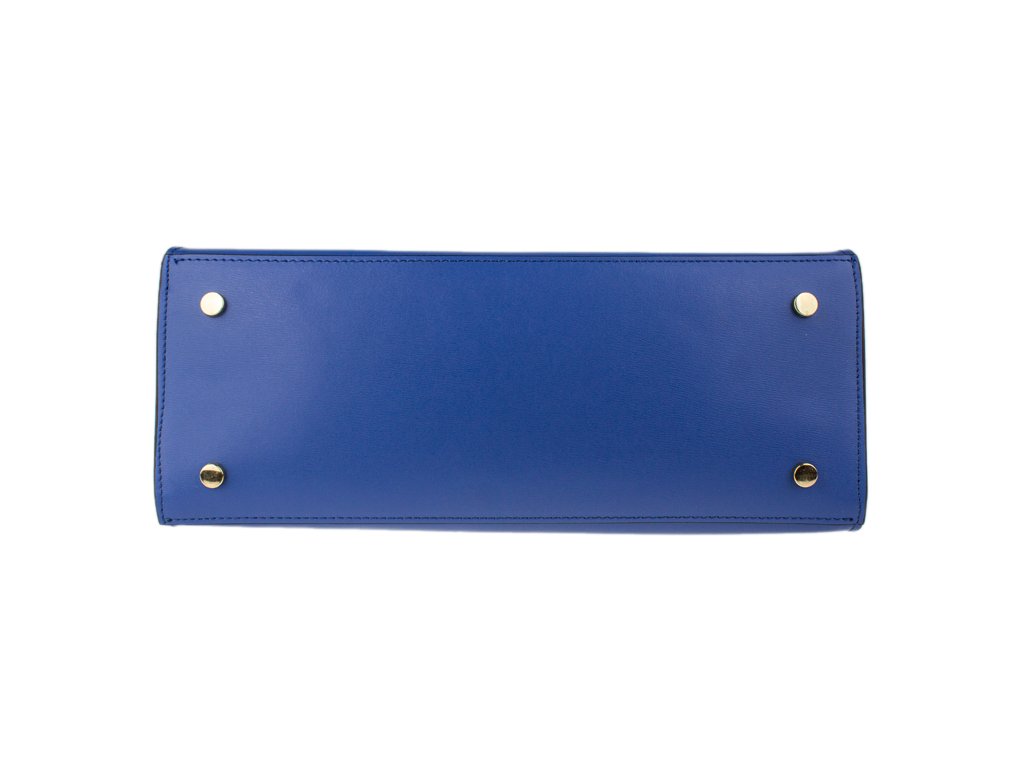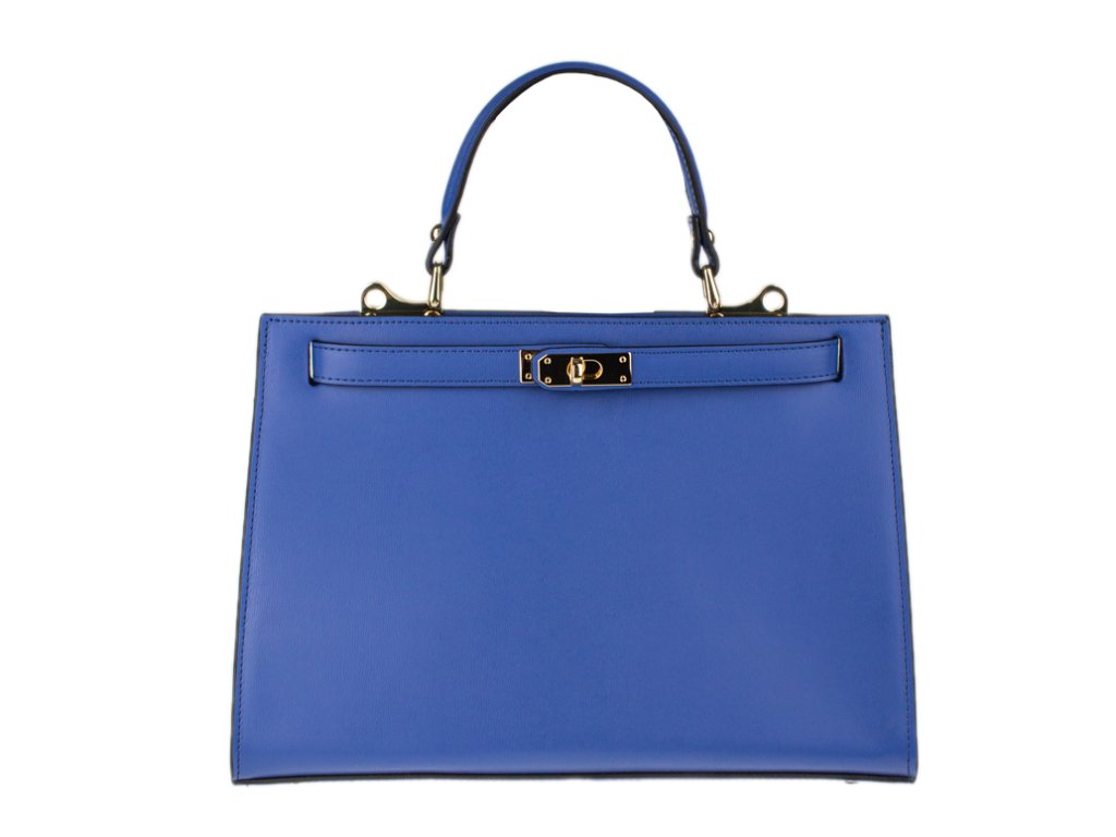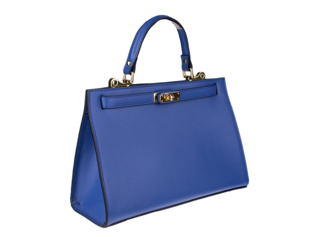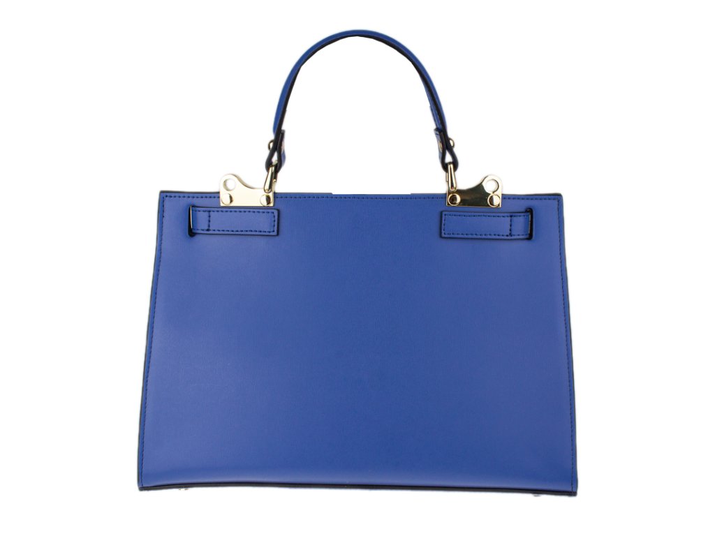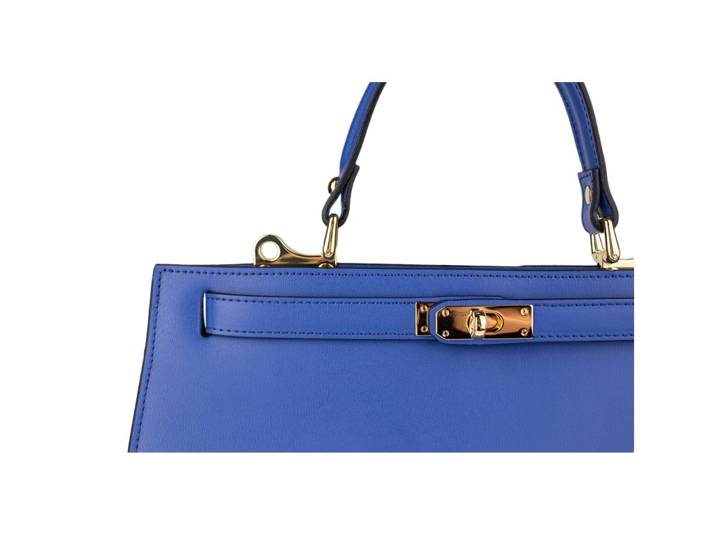 Krásná kabelka z pevné kůže v modré barvě. Kabelku lze nosit v ruce nebo přes rameno. Max. délka přídavného pásku je 115 cm. Kabelka je vybavena důmyslným a elegantním zapínáním. Uvnitř kabelky nalezneme kapsu na mobil či klíče.