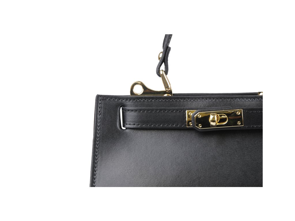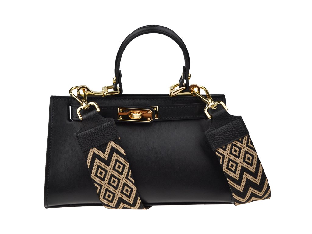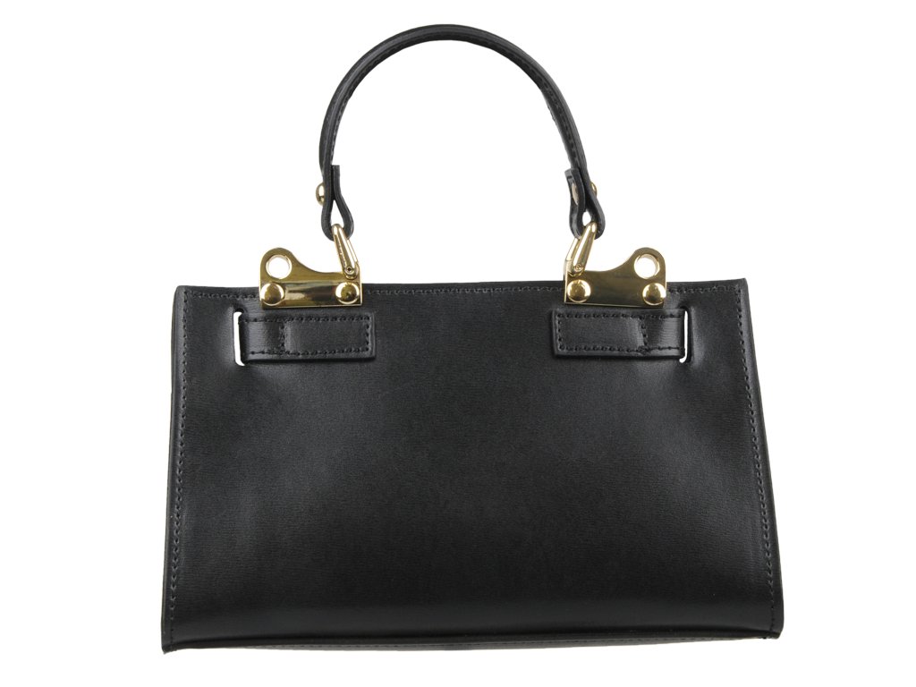 Malá kabelka z pevné kůže v černé barvě. Kabelku lze nosit v ruce nebo přes rameno. Max. délka přídavného pásku je 115 cm. Kabelka je vybavena důmyslným a elegantním zapínáním. Uvnitř kabelky nalezneme kapsu na mobil či klíče.