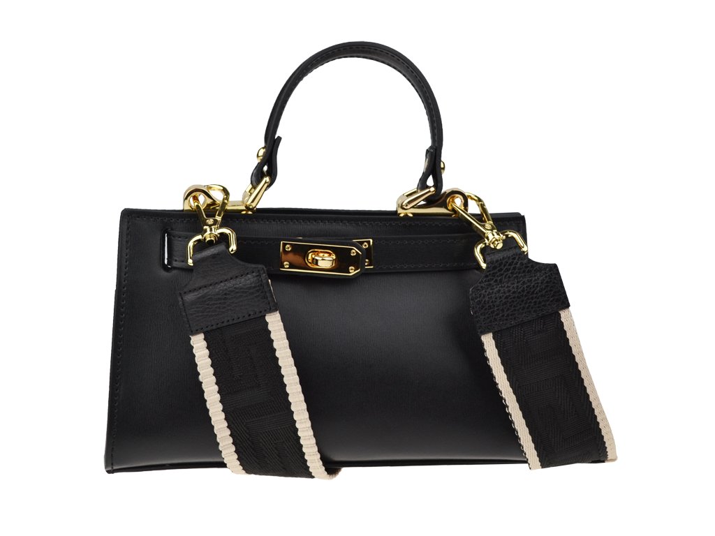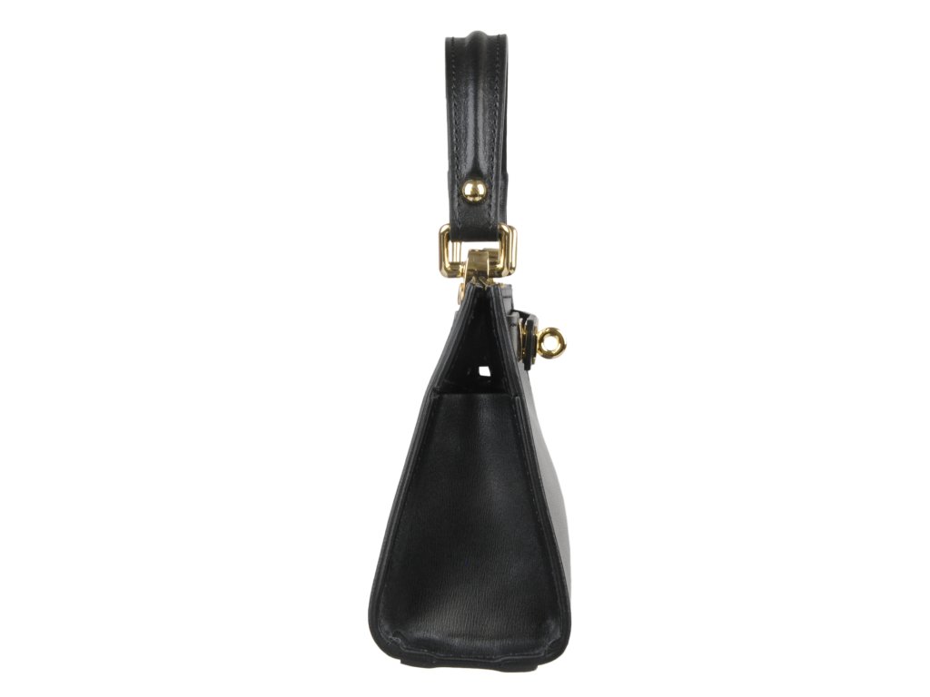 Malá kabelka z pevné kůže v černé barvě. Kabelku lze nosit v ruce nebo přes rameno. Max. délka přídavného pásku je 115 cm. Kabelka je vybavena důmyslným a elegantním zapínáním. Uvnitř kabelky nalezneme kapsu na mobil či klíče.