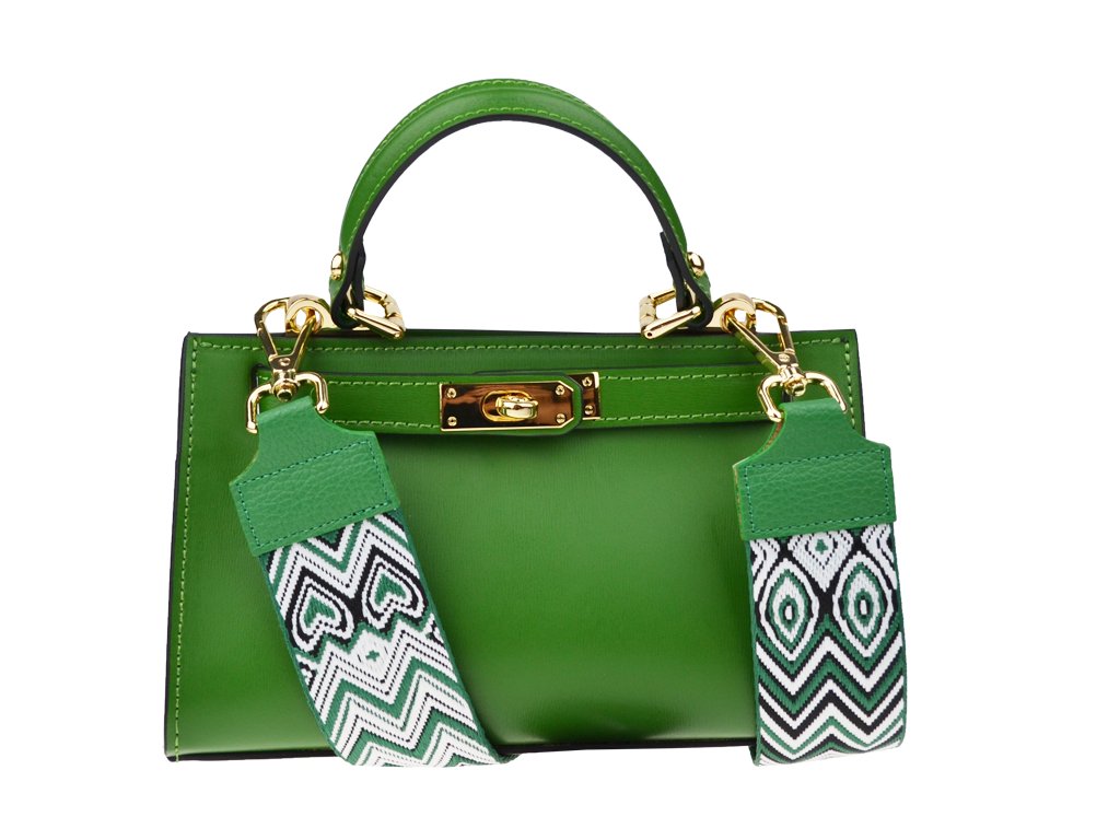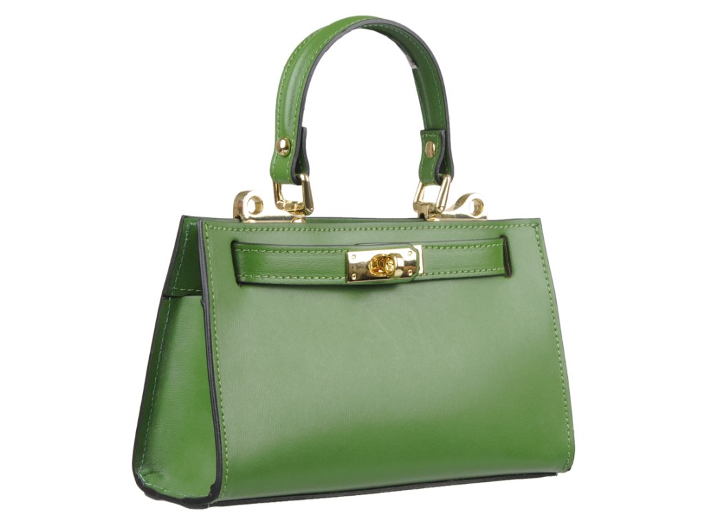 Malá kabelka z pevné kůže v zelené barvě. Kabelku lze nosit v ruce nebo přes rameno. Max. délka přídavného pásku je 115 cm. Kabelka je vybavena důmyslným a elegantním zapínáním. Uvnitř kabelky nalezneme kapsu na mobil či klíče.