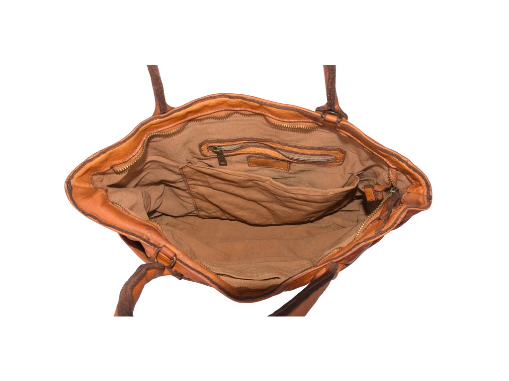 Praktická a prostorná kožená kabelka vcamel barvě. Jednoduché provedení a velký prostor dělá tuto kabelku neobyčejně praktickou pro denní nošení. Vnitřek kabelky je vybaven kapsou na zip.