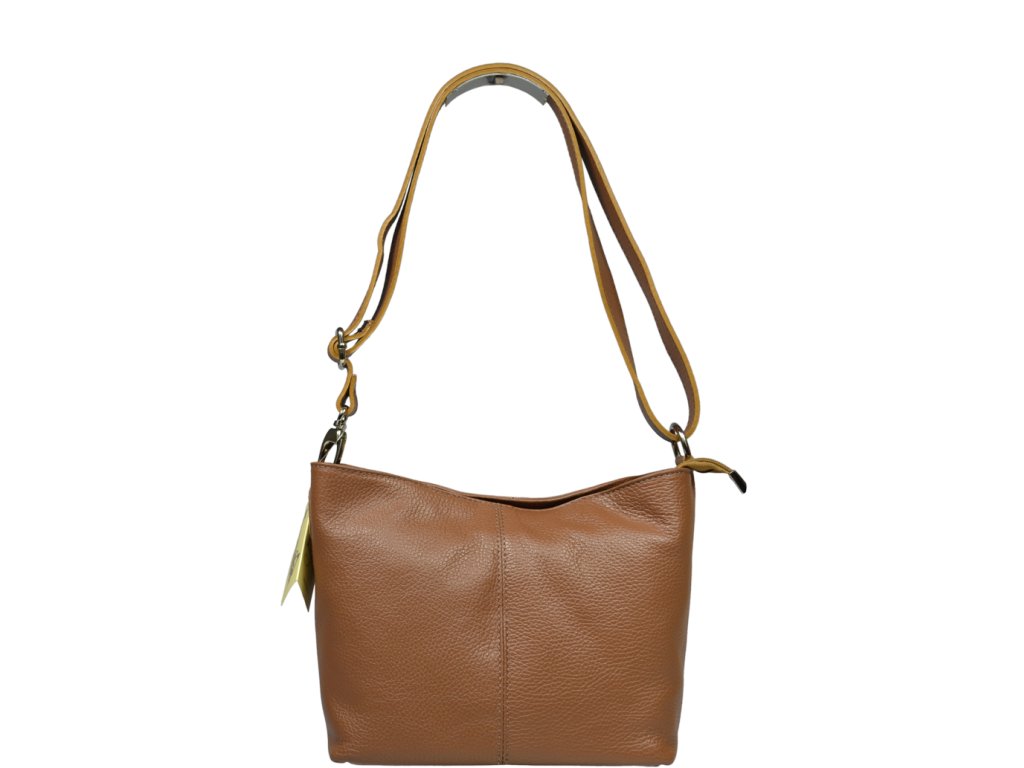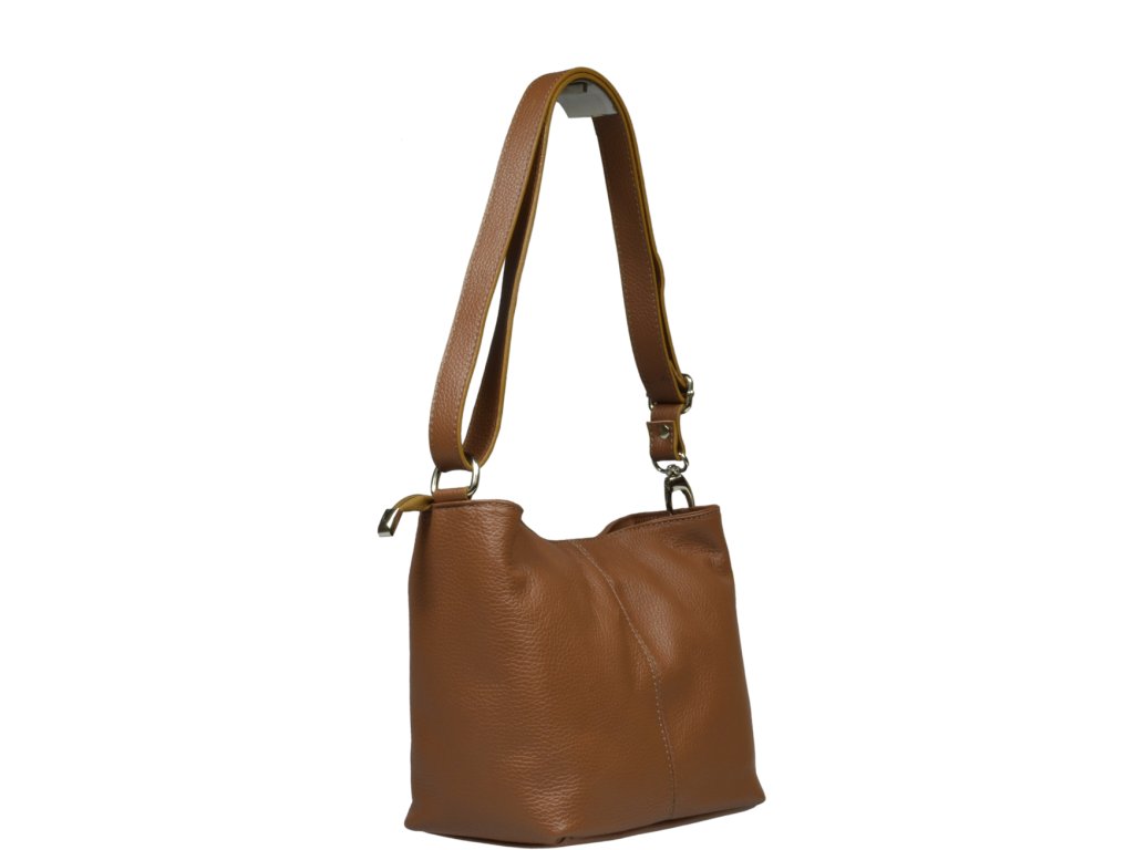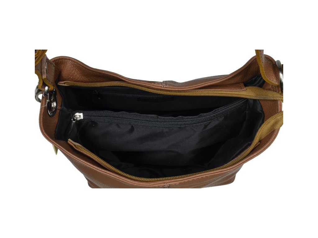 Camel kabelka nositelná přes rameno či cross-body (křížem). Kožená kabelka je uzavíratelná na zip. Uvnitř kabelky najdeme přepážku uprostřed, která zároveň slouží jako kapsa na zip, a na boční stěně pak kapsu na zip. Hloubka jejího dna je 13 cm. Kabelka má navíc nastavitelný popruh s maximální délkou cca 120 cm.