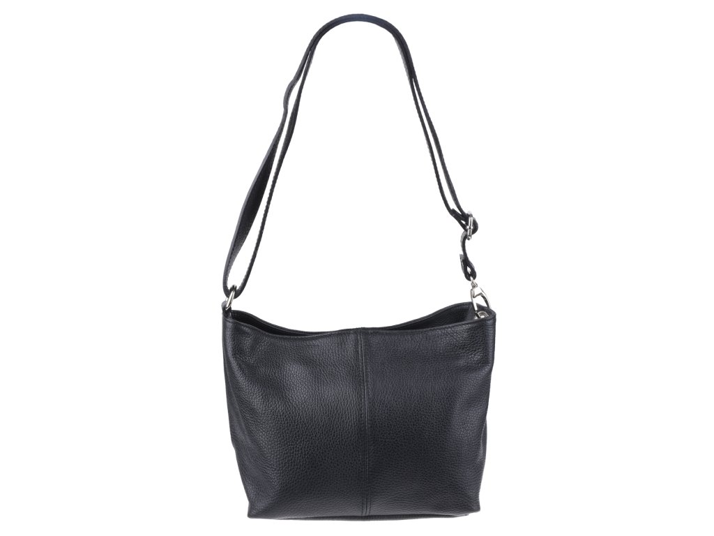 Set kabelky a přídavného popruhu. Černá kabelka nositelná přes rameno či cross-body (křížem). Tato kožená kabelka je uzavíratelná na zip. Uvnitř kabelky najdeme přepážku uprostřed, která zároveň slouží jako kapsa na zip, a na boční stěně pak kapsu na zip. Hloubka jejího dna je 13 cm. Kabelka má navíc nastavitelný popruh s maximální délkou cca 120 cm.