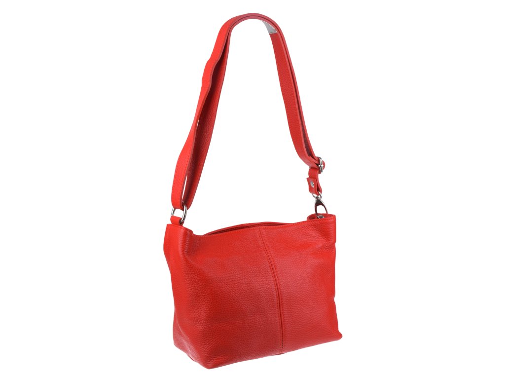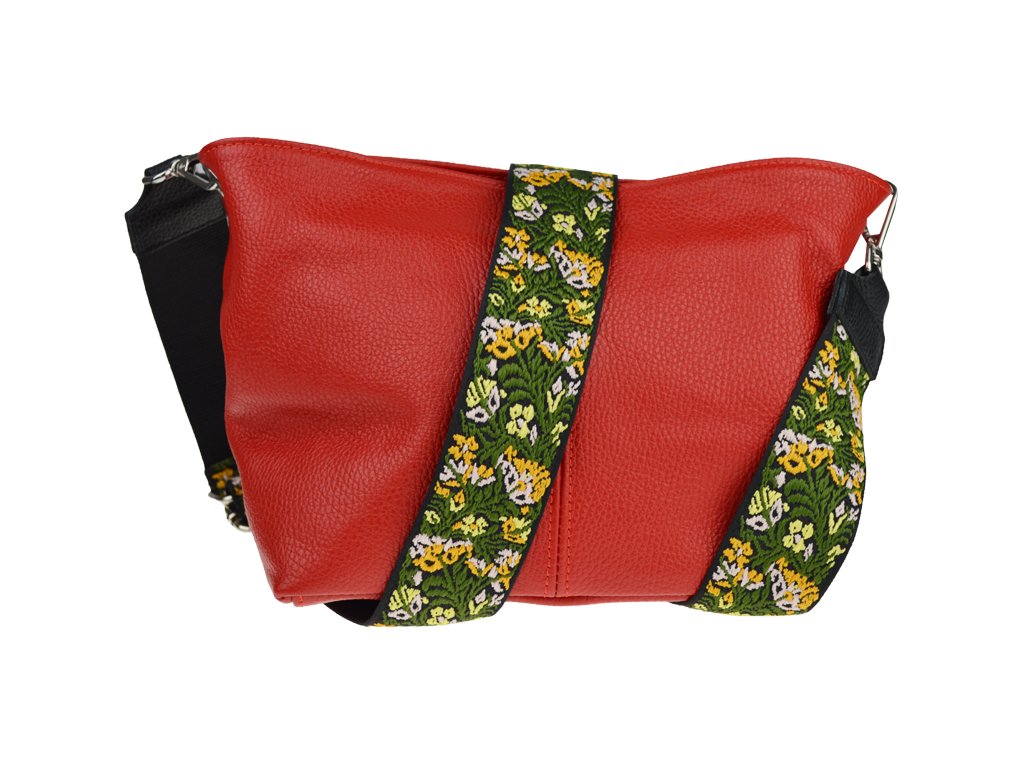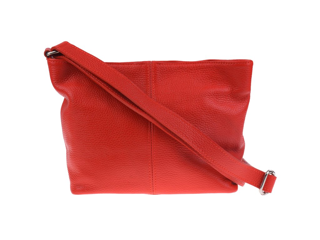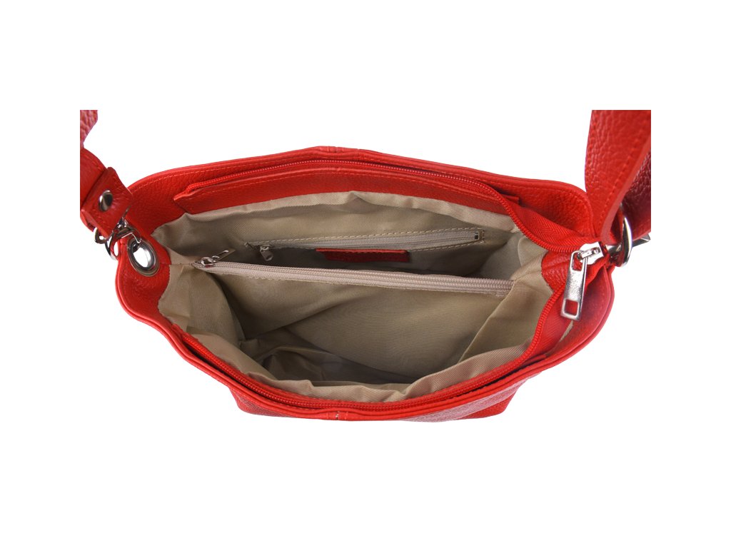Set kabelky Batilda Rosso a přídavného popruhu. Červená kabelka nositelná přes rameno či cross-body (křížem). Tato kožená kabelka je uzavíratelná na zip. Uvnitř kabelky najdeme přepážku uprostřed, která zároveň slouží jako kapsa na zip, a na boční stěně pak kapsu na zip. Hloubka jejího dna je 13 cm.