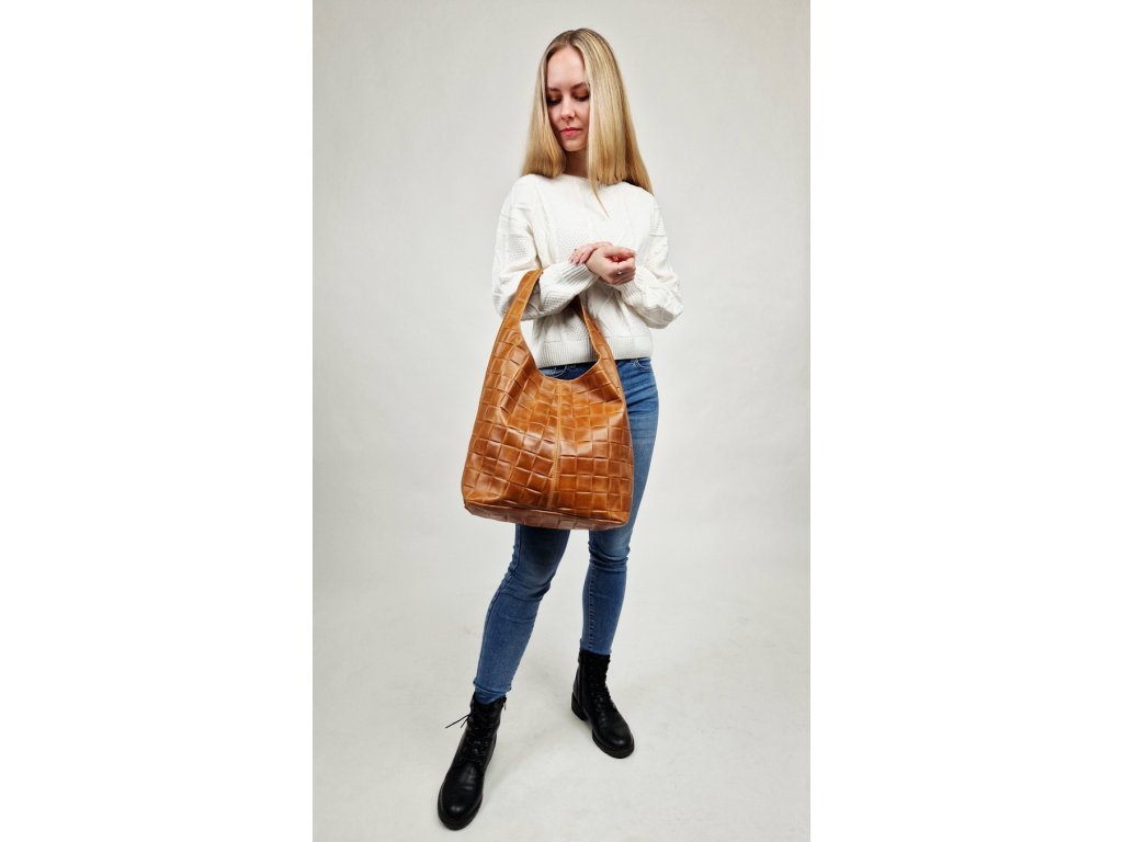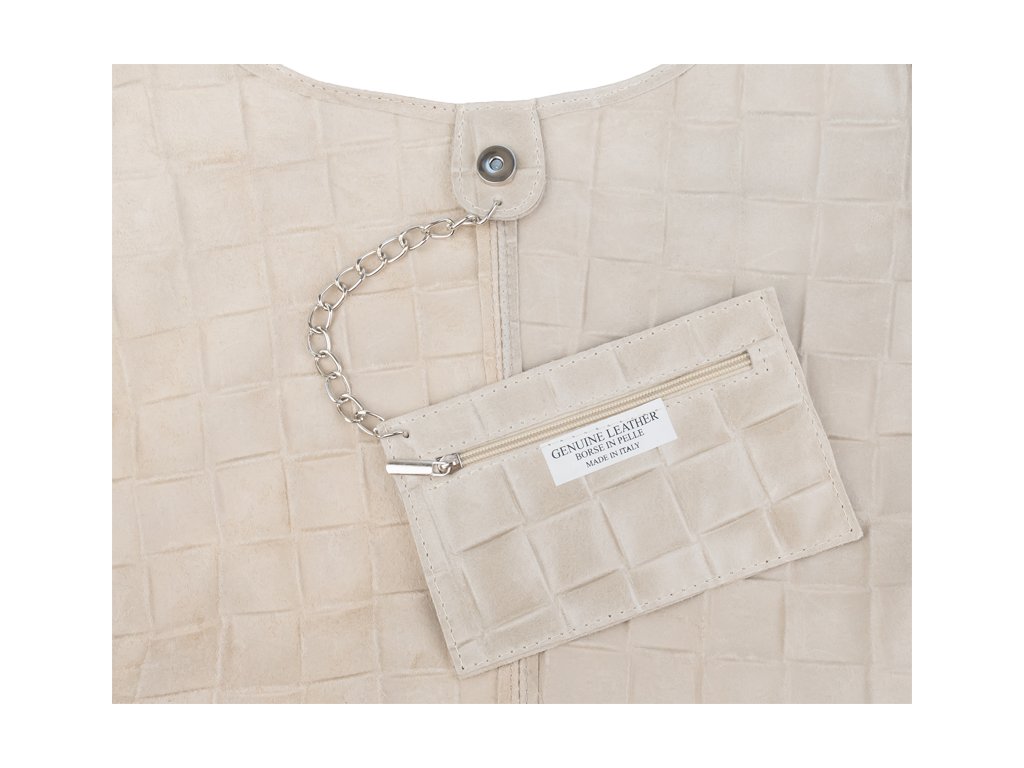 Praktická a prostorná kožená kabelka v béžové barvě. Jednoduché provedení a velký prostor dělá tuto kabelku neobyčejně praktickou pro denní nošení.