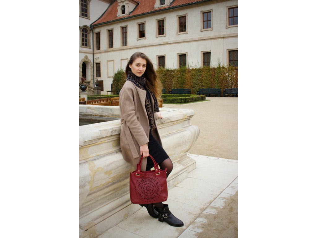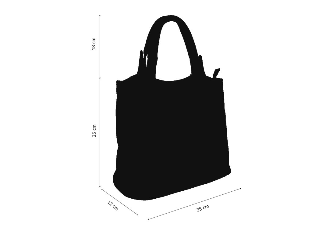 Kabelka se nosí přes rameno a je vhodná jak pro volný čas, tak i do práce. Uvnitř disponuje kapsou na zip, přepážkou fungující jako další kapsa na zip a také malou kapsou. Hloubka jejího dna je 12 cm. Součástí kabelky je také přídavný pásek v délce cca 100 cm.