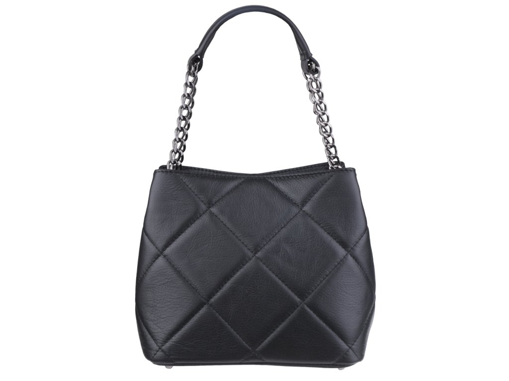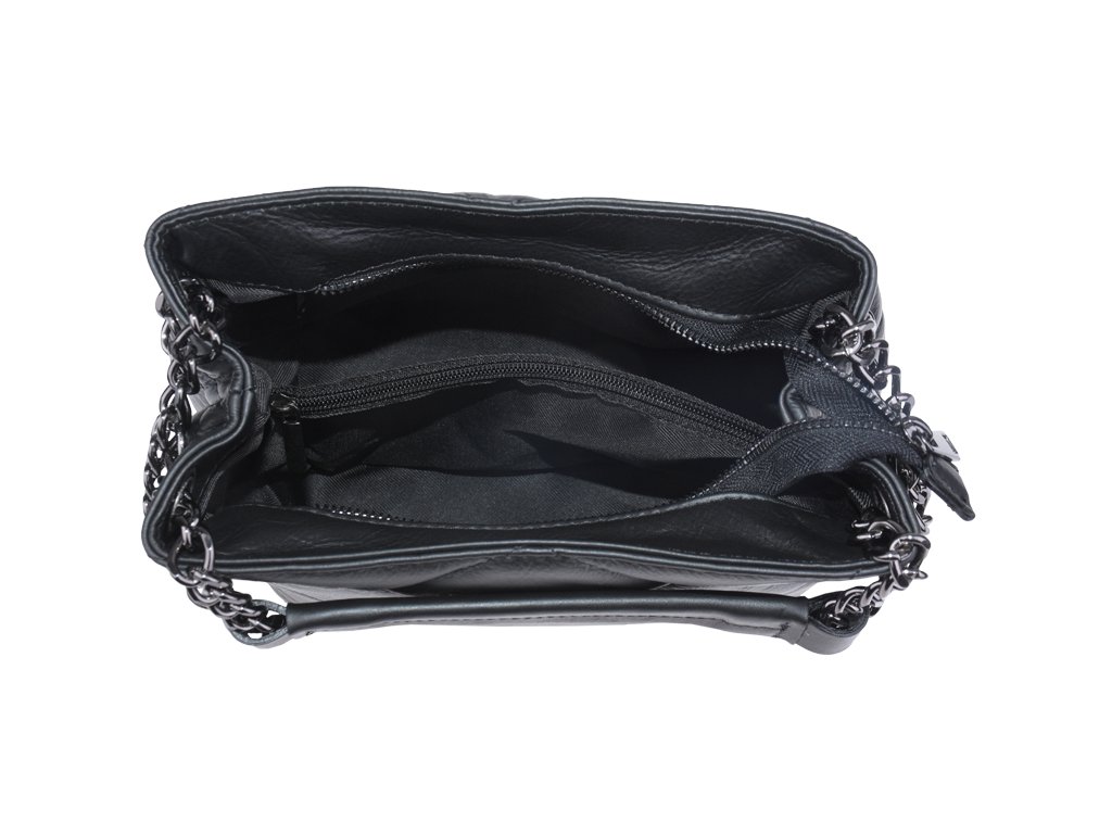 Krásná černá kabelka z měkké kůže. Tato originální kabelka určená k nošení přes rameno je vhodným doplňkem pro pravidelné nošení. Kabelka se uzavírá na zip.