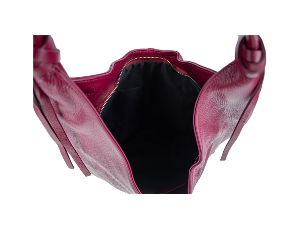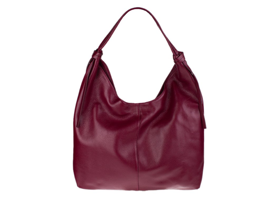 Tato stylová kabelka typu „shopping bag“ vás na první pohled zaujme svou krásnou bordo barvou a moderním, uvolněným střihem (tzv. hobo style). Je vyrobena z materiálu s jemnou zrnitou texturou, která jí dodává luxusní vzhled a je příjemná na dotek.