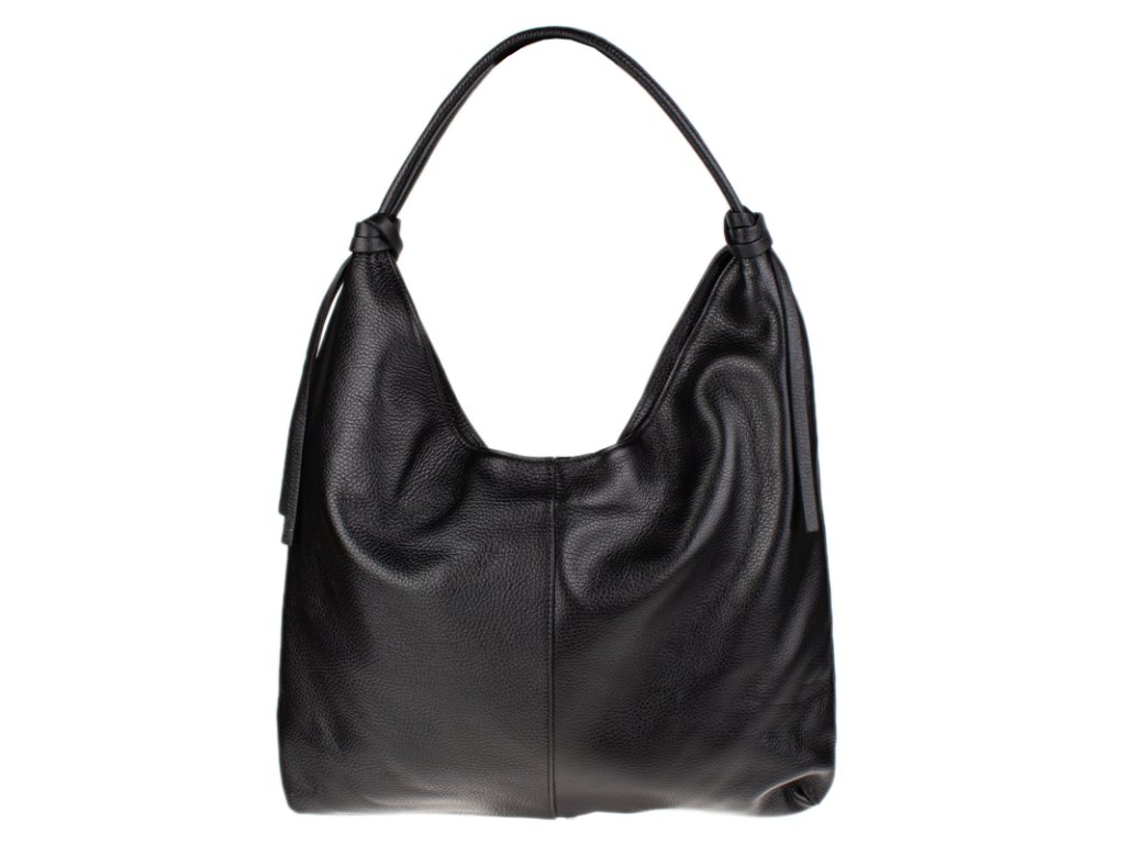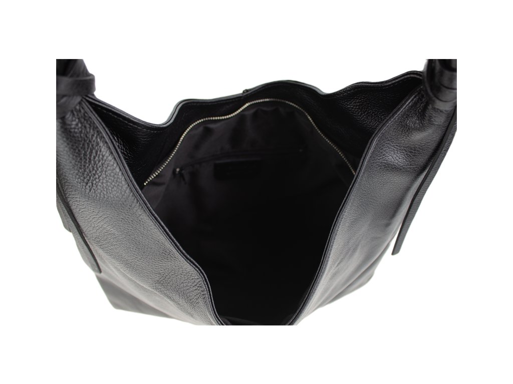Tato stylová kabelka typu „shopping bag“ vás na první pohled zaujme svou krásnou černou barvou a moderním, uvolněným střihem (tzv. hobo style). Je vyrobena z materiálu s jemnou zrnitou texturou, která jí dodává luxusní vzhled a je příjemná na dotek.