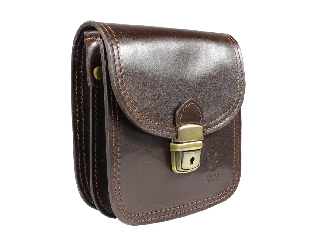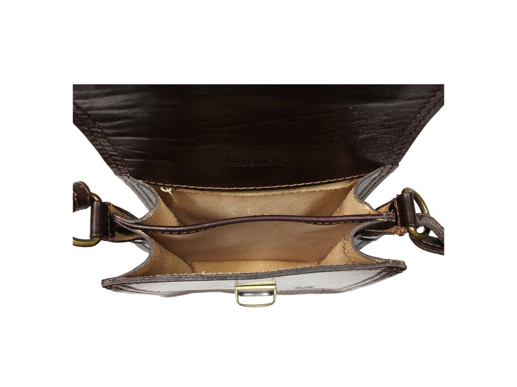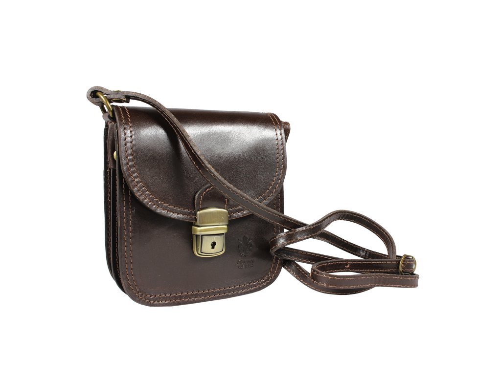 Malá šikovná kabelka se zajímavým tvarem. Kabelka je vyrobená z pravé kůže, která velice dobře drží svůj tvar. Je vhodná na nošení přes rameno nebo cross-body (křížem).