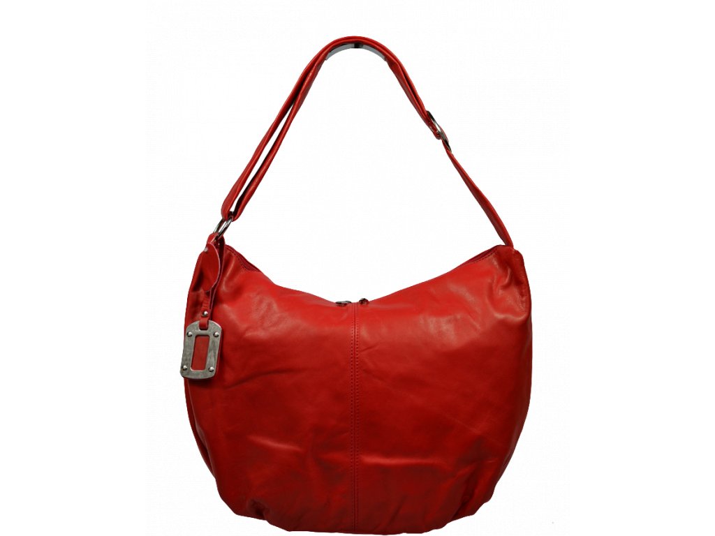 Kabelka vyrobená z pravé měkké kůže v červené barvě s moderním jemným designem. Tato kožená kabelka je uzavíratelná na zip. Díky kontinuální nastavitelnosti jejího popruhu (až 100 cm) lze kabelku nosit jak přes rameno, tak způsobem cross-body (křížem). Uvnitř kabelky najdeme přepážku uprostřed, která zároveň slouží jako kapsa na zip, a na bočních stěnách pak kapsu na zip a na druhé straně další malou kapsu.