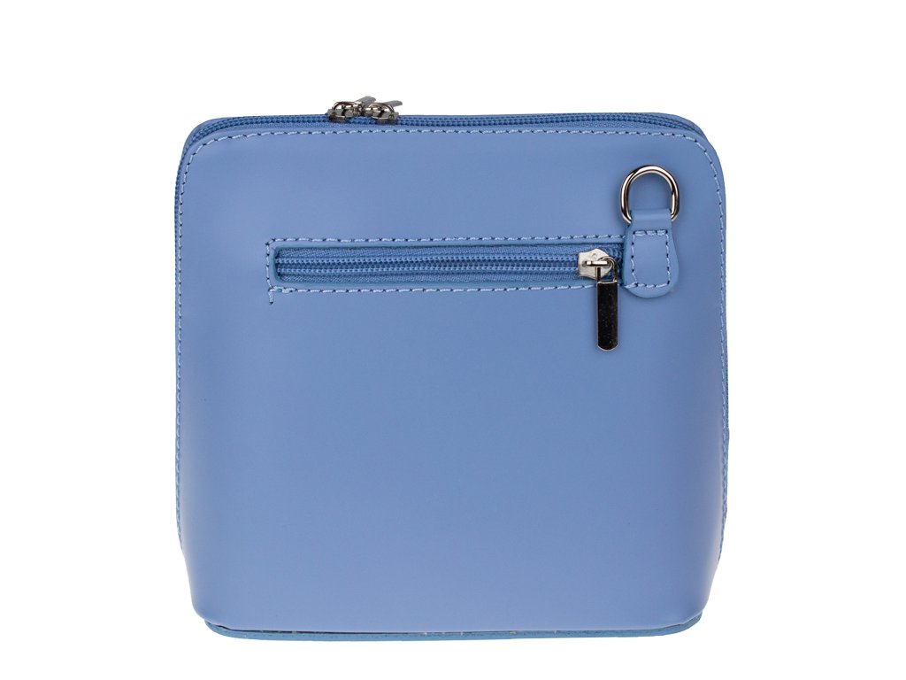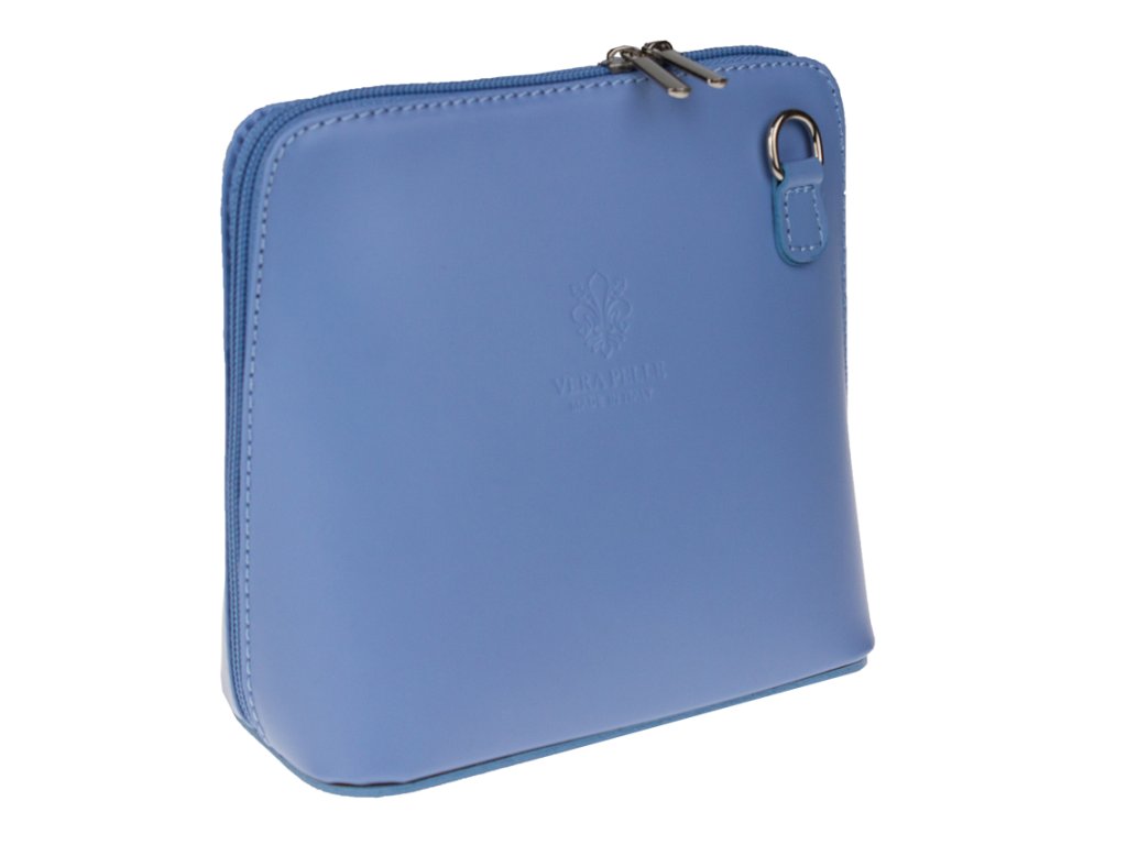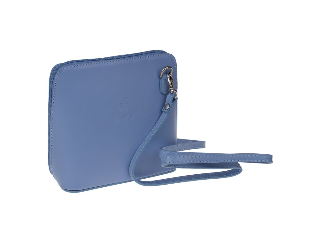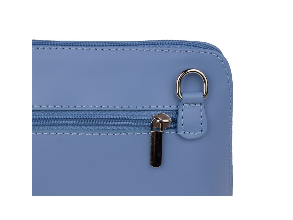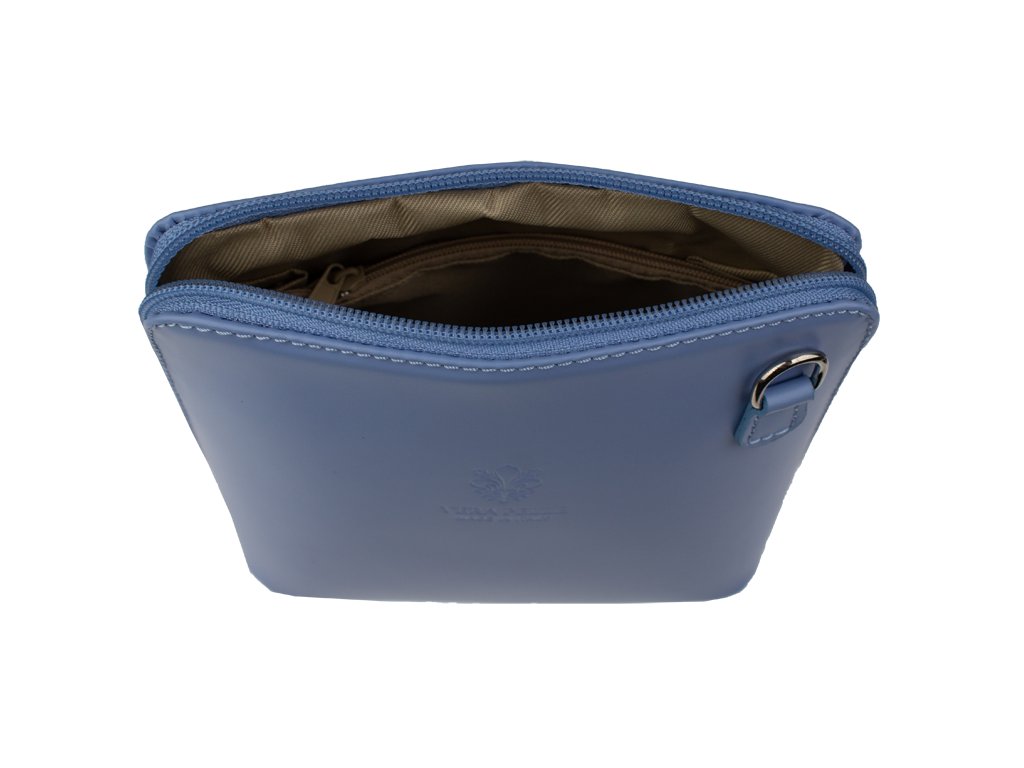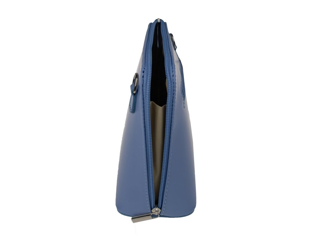 Elegantní, ale zároveň velmi praktická modrá kabelka malých rozměrů vyrobena z pravé kůže. Díky tenkému pásku je nositelná přes rameno. Zip, kterým se uzavírá, vede po hraně kabelky až po spodní okraj na obou stranách, a proto je její vnitřek dobře dostupný. Na vnější zadní straně najdete na kabelce malou kapsu na zip a uvnitř dělí celý prostor na dvě části příčka, která současně slouží jako kapsa na zip. Hloubka jejího dna je 8 cm. Délka přídavného popruhu je cca 120 cm.
