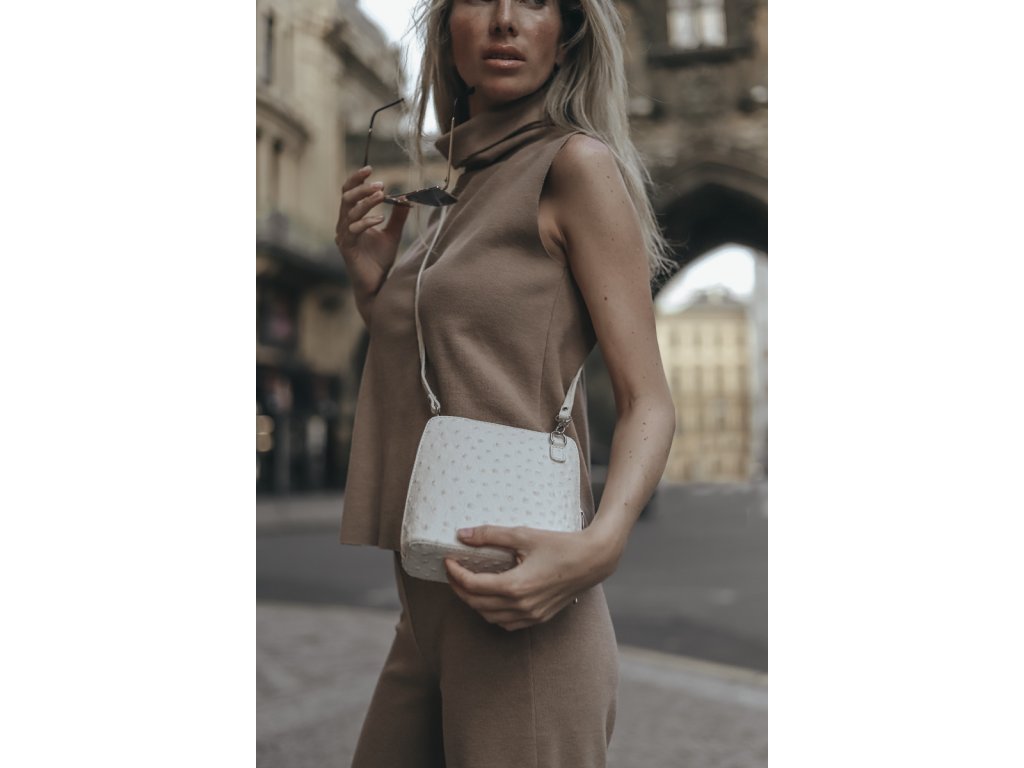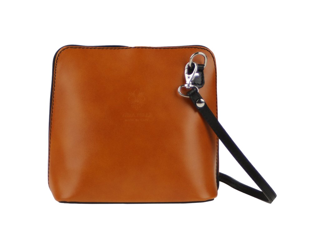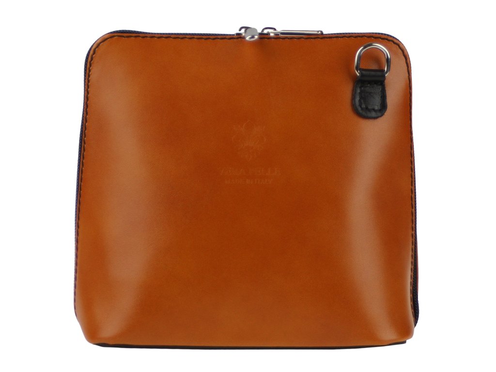 Elegantní, ale zároveň velmi praktická camel kabelka malých rozměrů vyrobena z pravé kůže. Díky tenkému pásku je nositelná přes rameno. Zip, kterým se uzavírá, vede po hraně kabelky až po spodní okraj na obou stranách, a proto je její vnitřek dobře dostupný. Na vnější zadní straně najdete na kabelce malou kapsu na zip a uvnitř dělí celý prostor na dvě části příčka, která současně slouží jako kapsa na zip. Hloubka jejího dna je 8 cm. Délka přídavného popruhu je cca 120 cm.