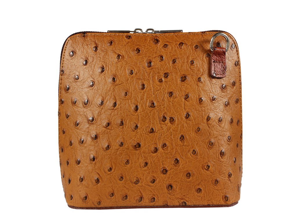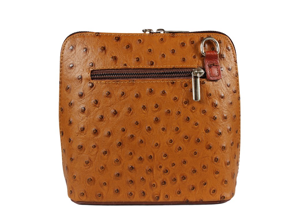 Elegantní, ale zároveň velmi praktická kabelka se pštrosí texturou vyrobena z pravé kůže. Díky tenkému pásku je nositelná přes rameno. Zip, kterým se uzavírá, vede po hraně kabelky až po spodní okraj na obou stranách, a proto je její vnitřek dobře dostupný. Na vnější zadní straně najdete na kabelce malou kapsu na zip a uvnitř dělí celý prostor na dvě části příčka, která současně slouží jako kapsa na zip. Hloubka jejího dna je 8 cm. Délka přídavného popruhu je cca 120 cm.