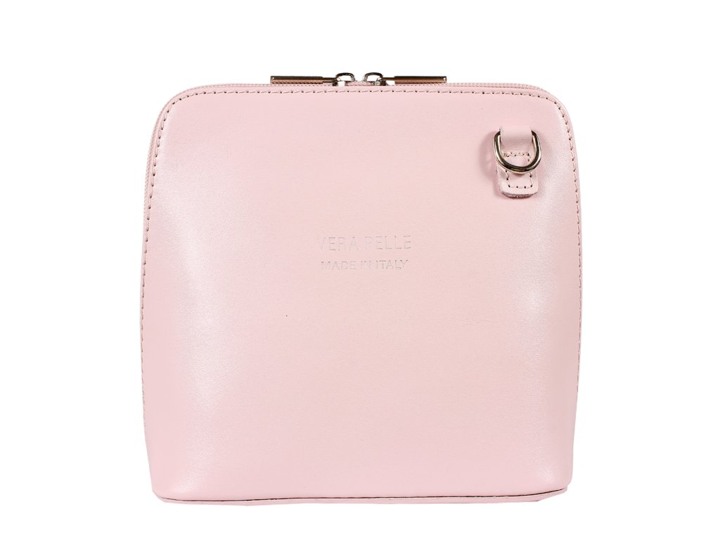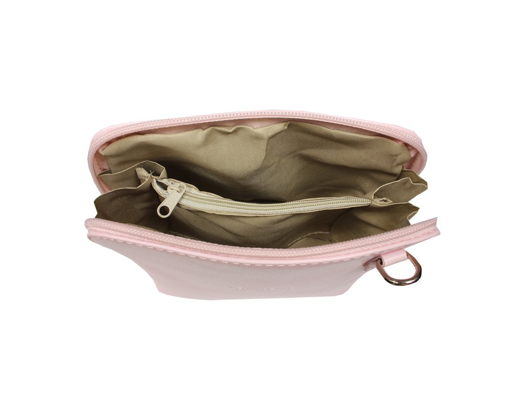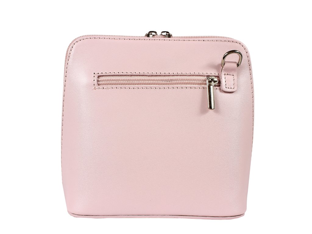 Elegantní, ale zároveň velmi praktická růžová kabelka malých rozměrů vyrobena z pravé kůže. Díky tenkému pásku je nositelná přes rameno. Zip, kterým se uzavírá, vede po hraně kabelky až po spodní okraj na obou stranách, a proto je její vnitřek dobře dostupný. Na vnější zadní straně najdete na kabelce malou kapsu na zip a uvnitř dělí celý prostor na dvě části příčka, která současně slouží jako kapsa na zip. Hloubka jejího dna je 8 cm. Délka přídavného popruhu je cca 120 cm.