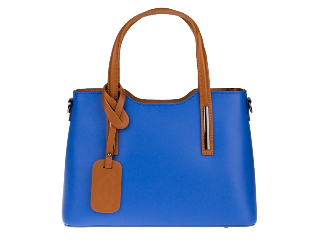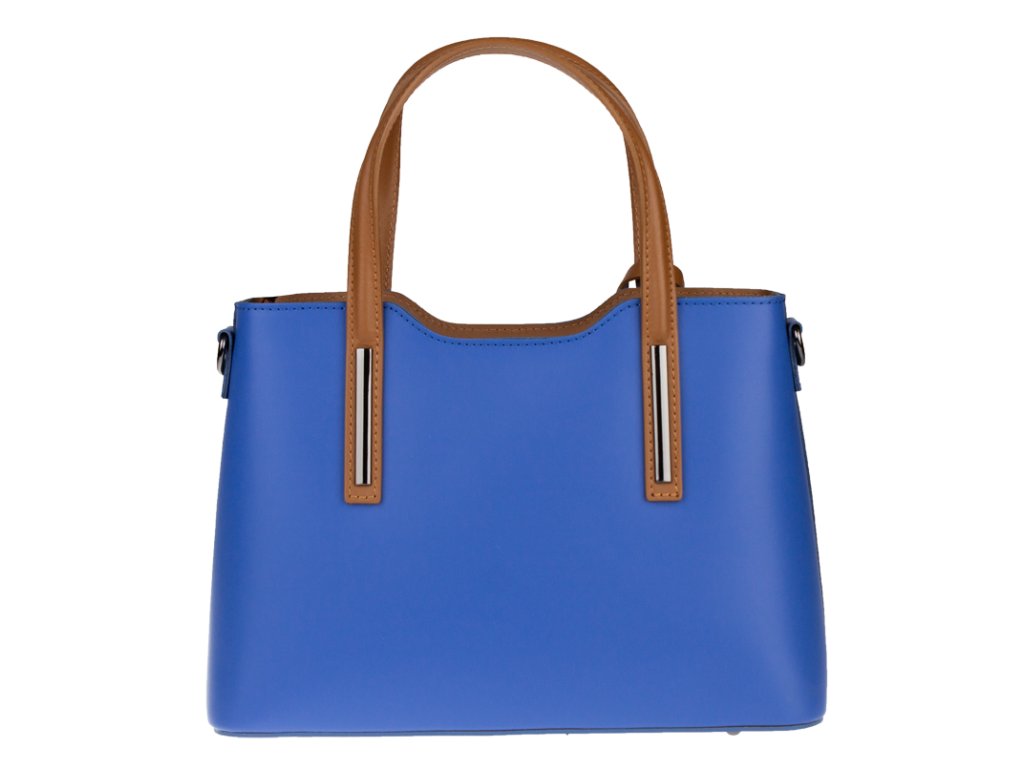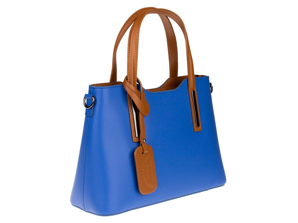 Praktická kabelka v modrém provedení pro každodenní nošení vyrobená z pevné pravé kůže. Nosí se v ruce nebo na rameni. Kabelka je uzavíratelná na zip. Součástí balení je přídavný nastavitelný popruh - cca 107 cm v plné délce. Uvnitř kabelky najdeme přepážku uprostřed, která zároveň slouží jako kapsa na zip, a na bočních stěnách pak kapsu na zip a 2 malé kapsy vhodné např. pro mobil a peněženku.