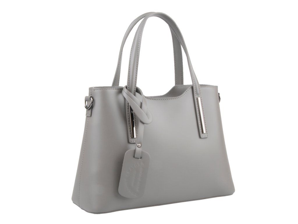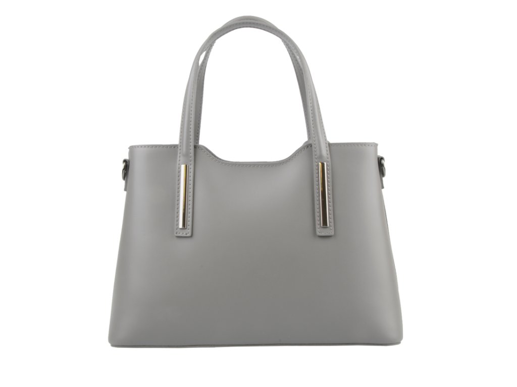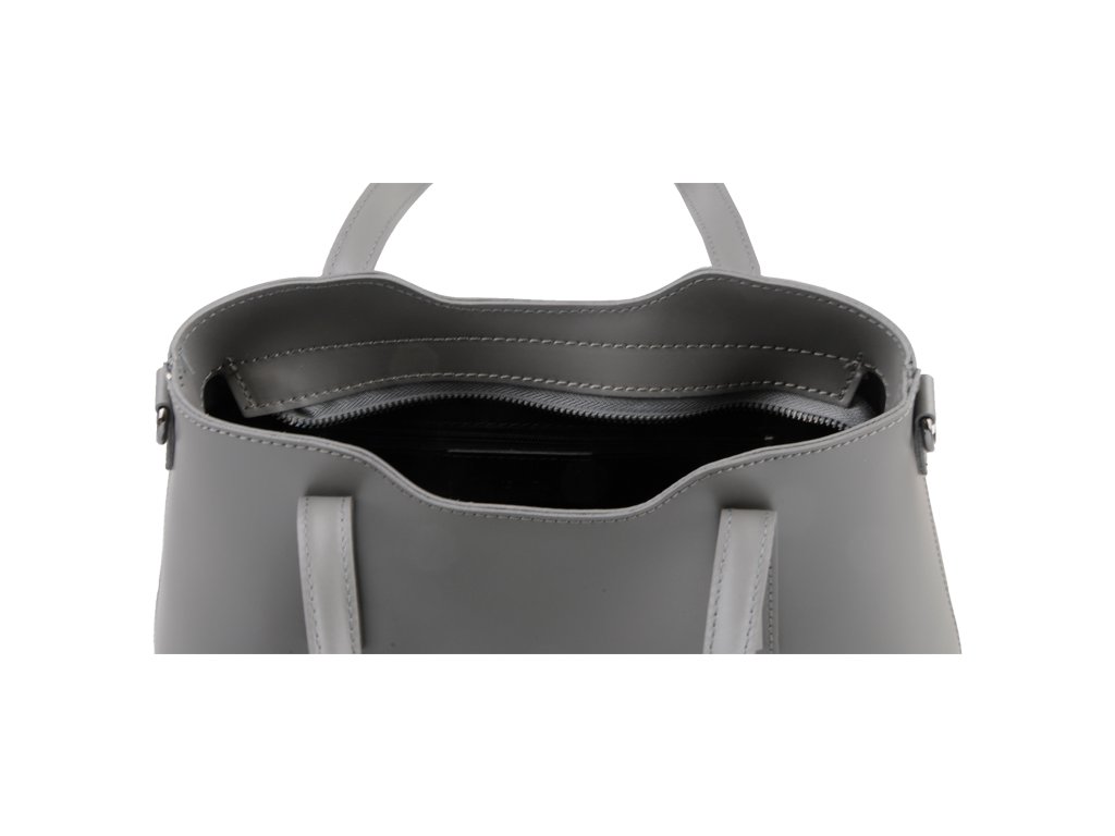 Praktická kabelka v šedém provedení pro každodenní nošení vyrobená z pevné pravé kůže. Nosí se v ruce nebo na rameni. Kabelka je uzavíratelná na zip. Součástí balení je přídavný nastavitelný popruh - cca 107 cm v plné délce. Uvnitř kabelky najdeme přepážku uprostřed, která zároveň slouží jako kapsa na zip, a na bočních stěnách pak kapsu na zip a 2 malé kapsy vhodné např. pro mobil a peněženku.